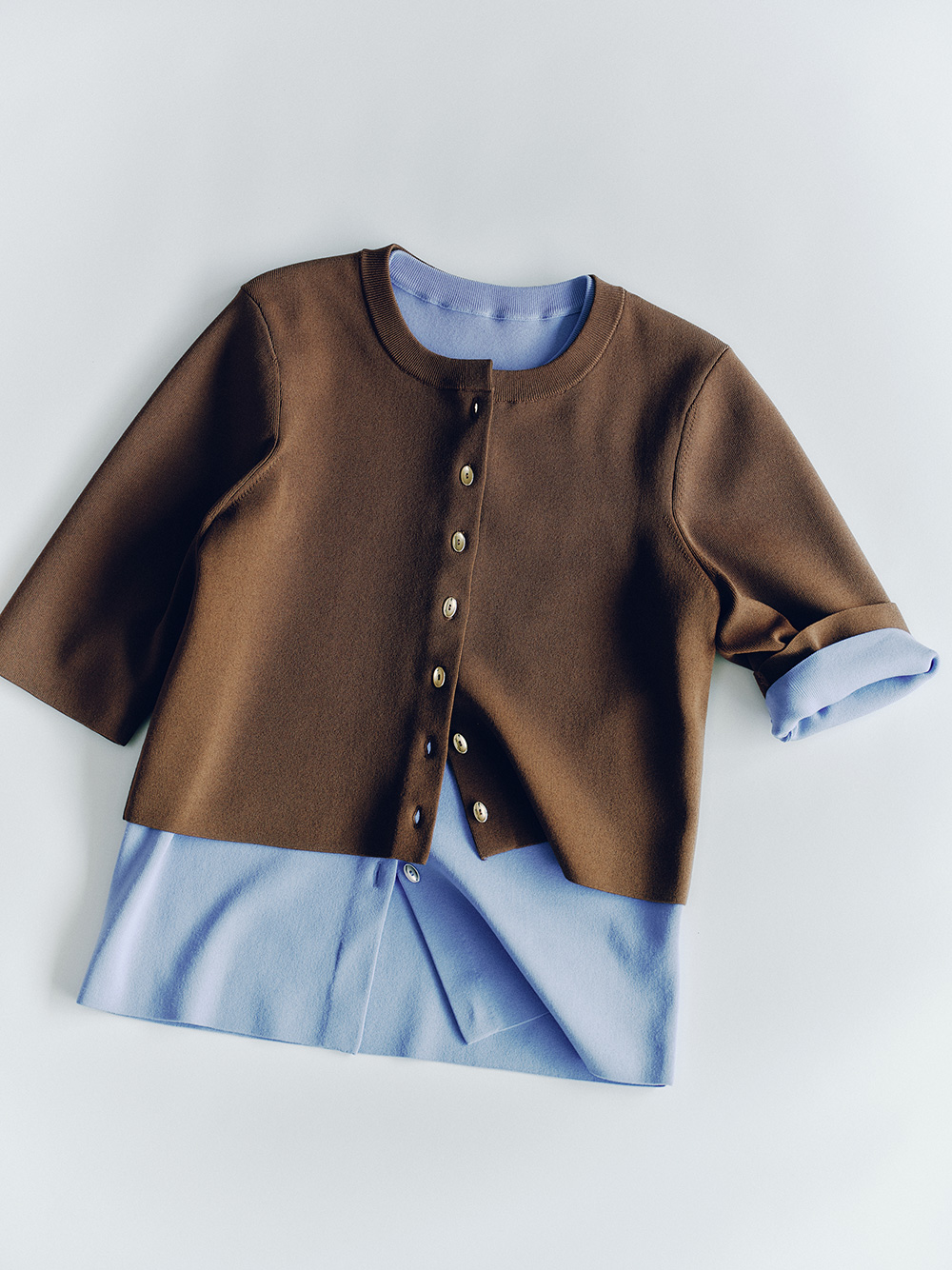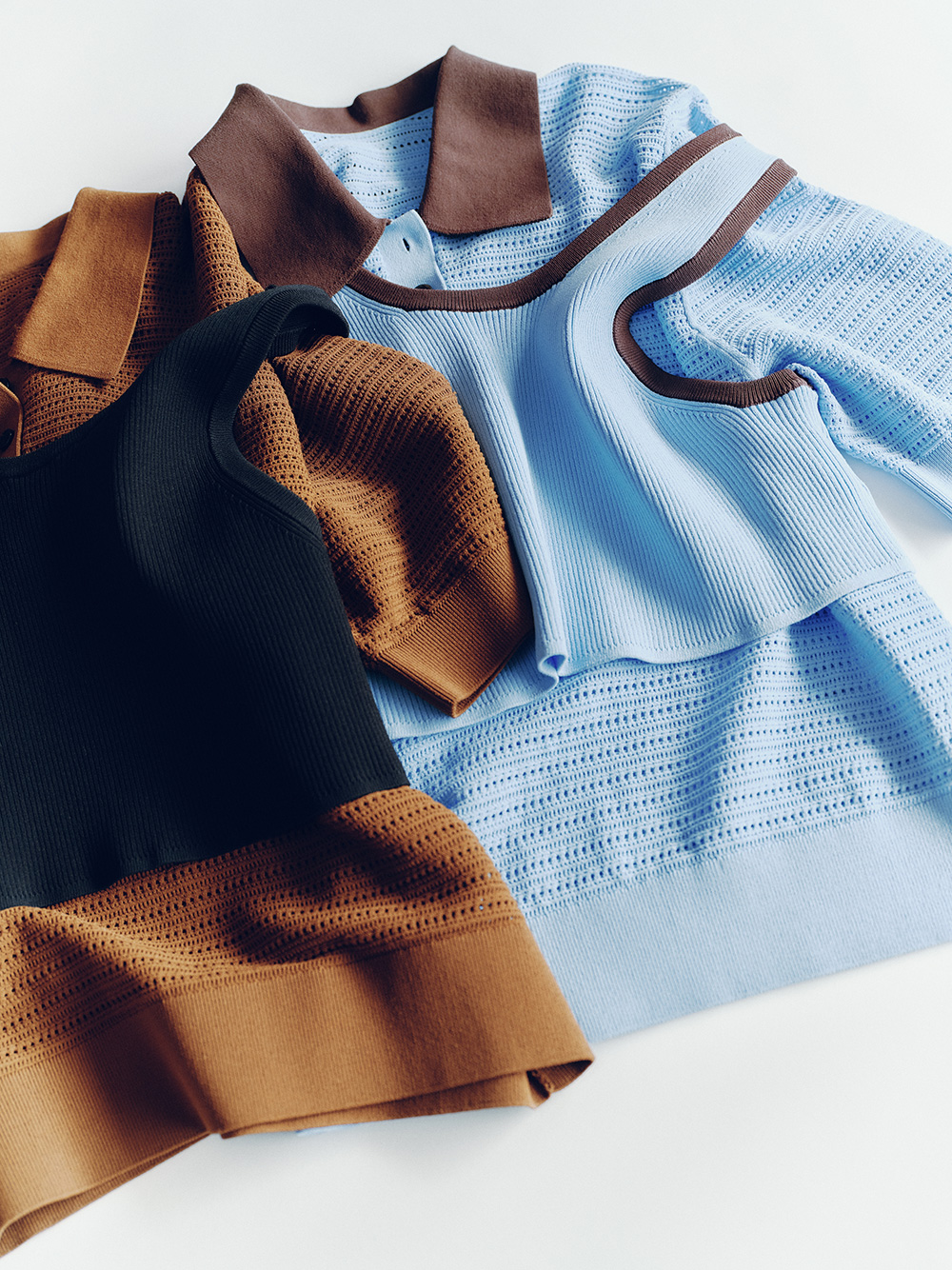 ニットが主役になるのは秋冬だけにあらず。軽やかな素材が増えるこの季節だからこそ、編み地の表情がスタイリングに奥行きを生む。コットンやリネンともに質感のコントラストを楽しみながら、装いにさりげない変化を。