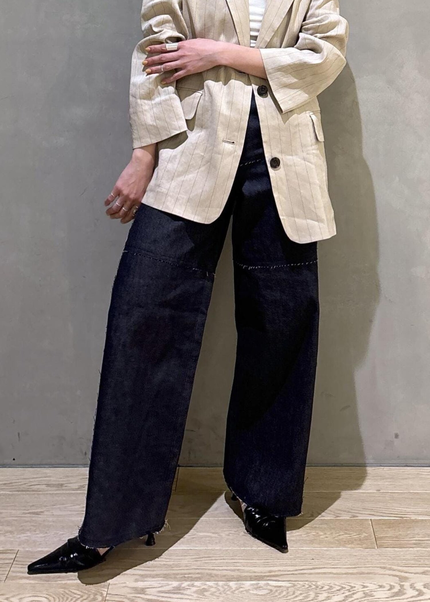 動きやすさとスタイリッシュさを兼ね備えるパンツは、大人のオフィスコーデにぴったりなアイテム。定番のテーパードパンツはもちろん、トレンドのワイドパンツはまさにオフィスカジュアルコーデに最適です。濃紺のデニム素材やカジュアルなパンツも、ジャケットやシャツを合わせることでカジュアルすぎないモードなオフィススタイルに。