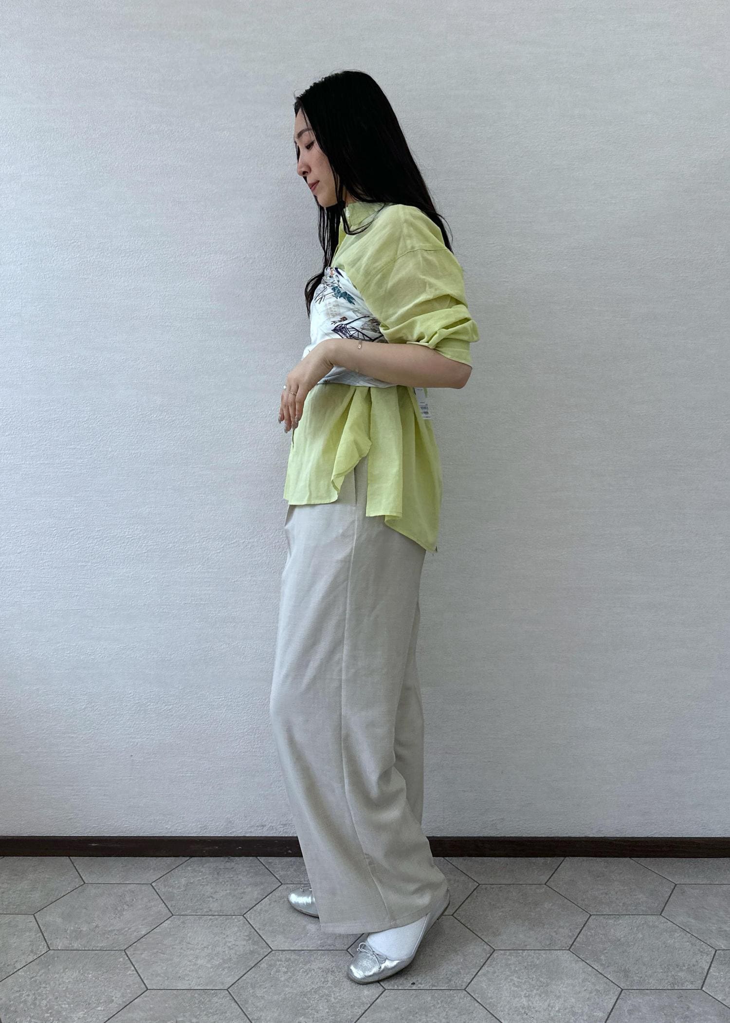 ボトムスや小物も淡色でまとめてトップスが引き立つコーデにしました♩