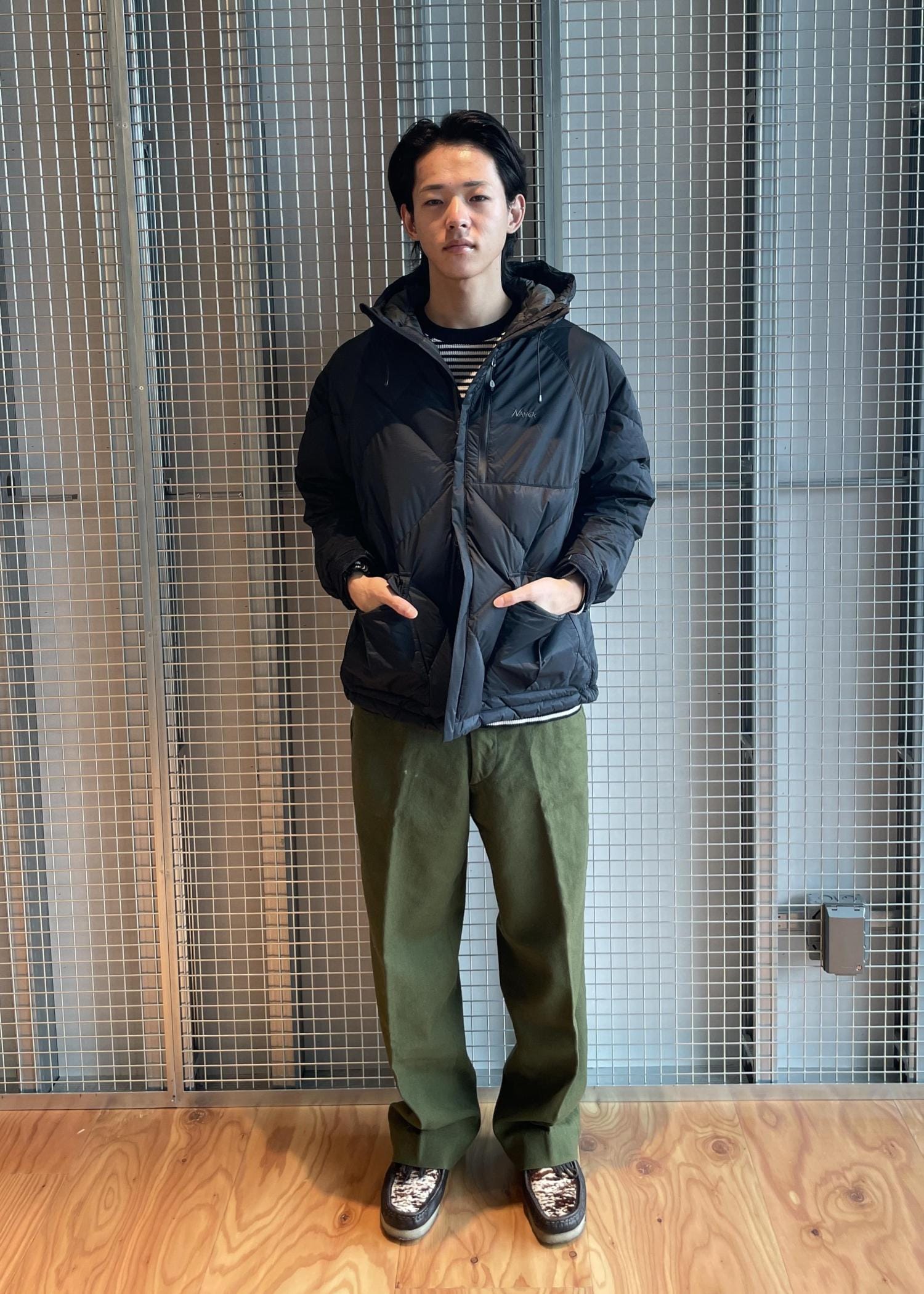 スウェット自体のオンスも厚く、肌触りも良く着心地も気持ちいいアイテムです。黒のダウンベストとの相性もよく、アウトドアでもカジュアルでも、どんなライフスタイルにも合わせやすいコーディネート。