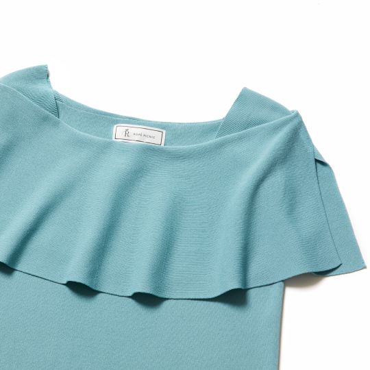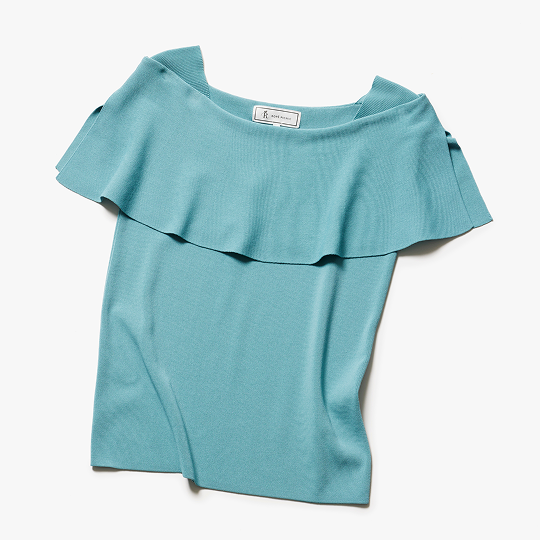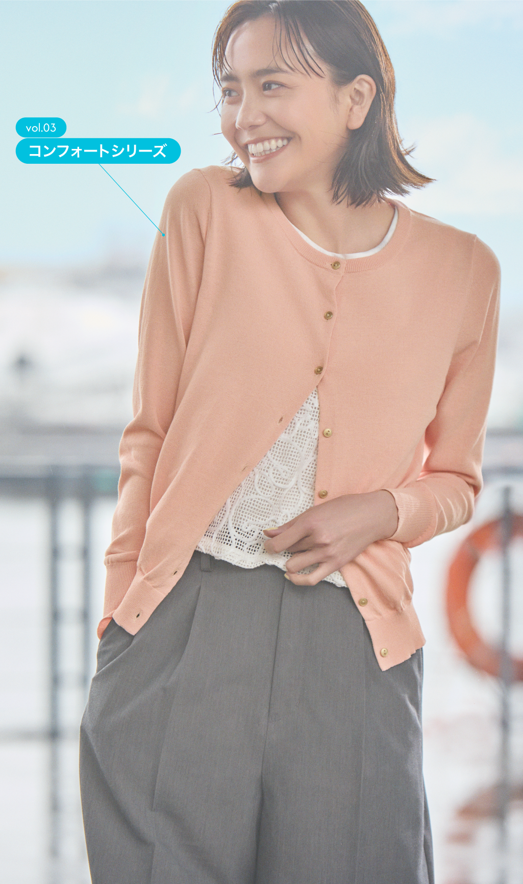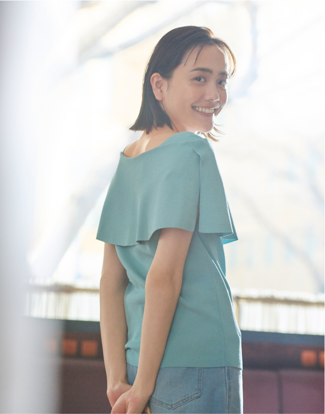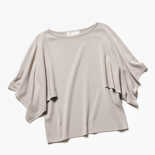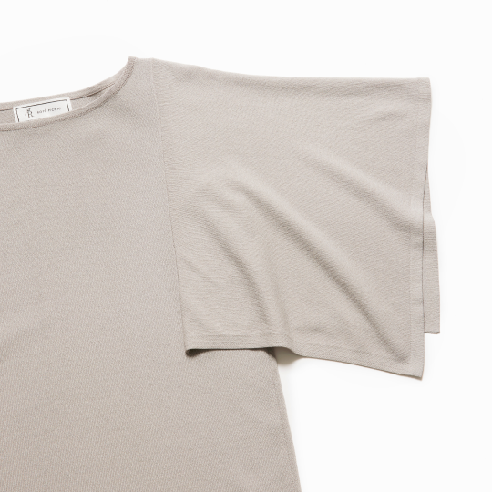 - しなやかなスカーフから着想を得たスクエア形状のスリーブで二の腕をさりげなくカバー。袖のつけ位置を内側に配し、身幅を細く設定することで、着る人をスリムな印象に導いて。洗濯機に入れてもシワになりにくく美しいシルエットを保てる。
