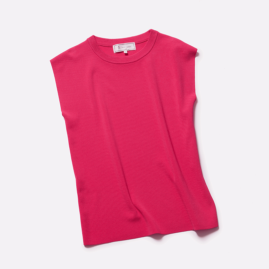 - ボトムを選ばない万能トップス。やや肉厚な素材がボディラインや下着の線を拾いにくく、1枚で着るのはもちろん、インナーとしても活躍。肩先まで覆うノースリーブで、腕の露出も程よい具合に。豊富な色展開も人気の理由のひとつ。