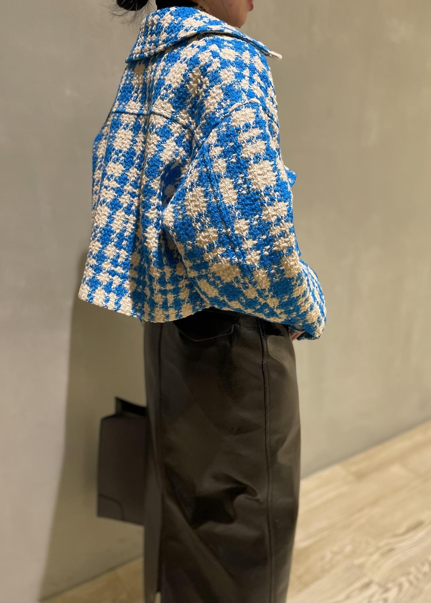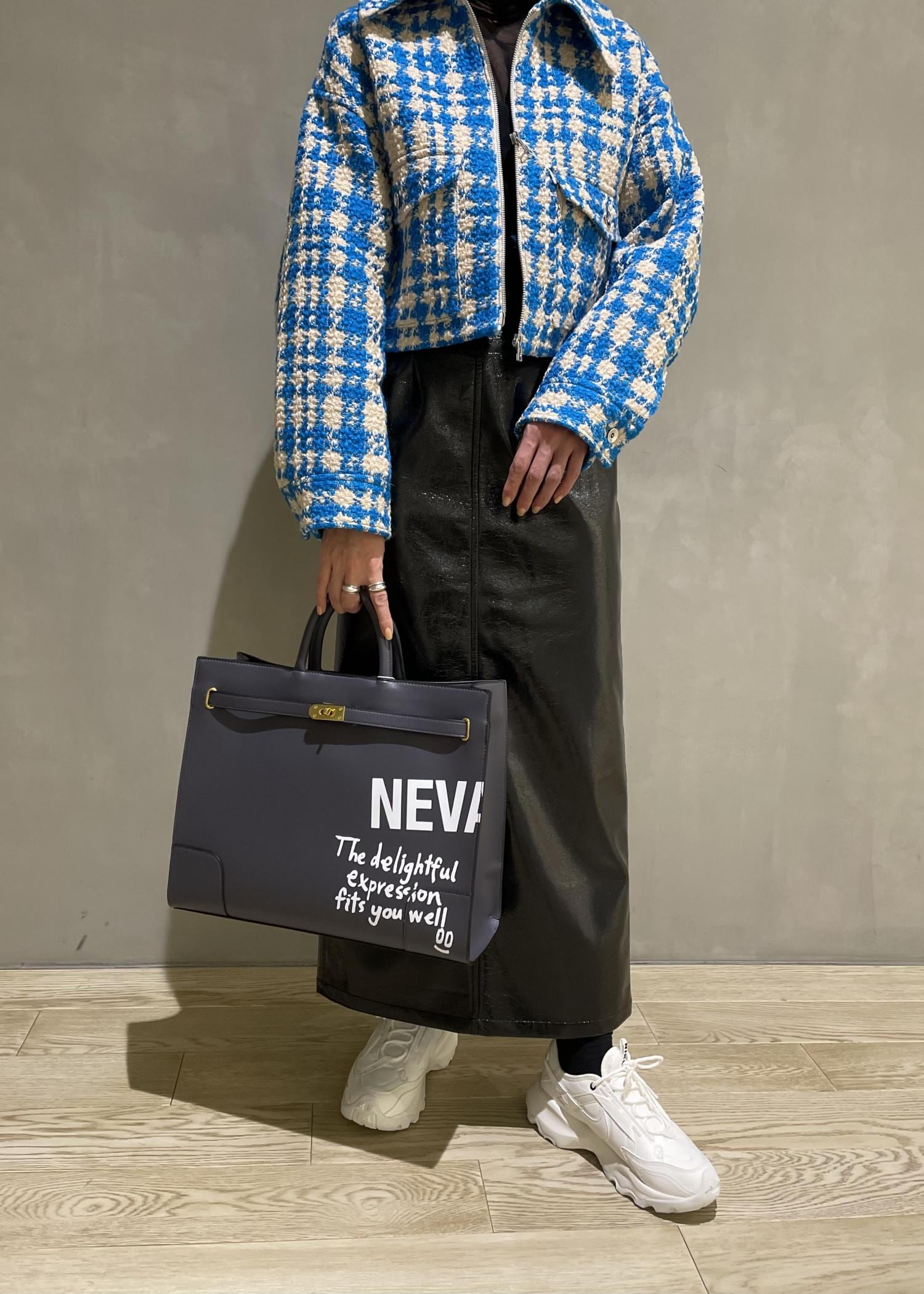 素材感といい、カラーリングがとっても可愛いツイードブルゾン!ブラックのラミネートスカートと合わせてモードなスタイリングにしました!♡