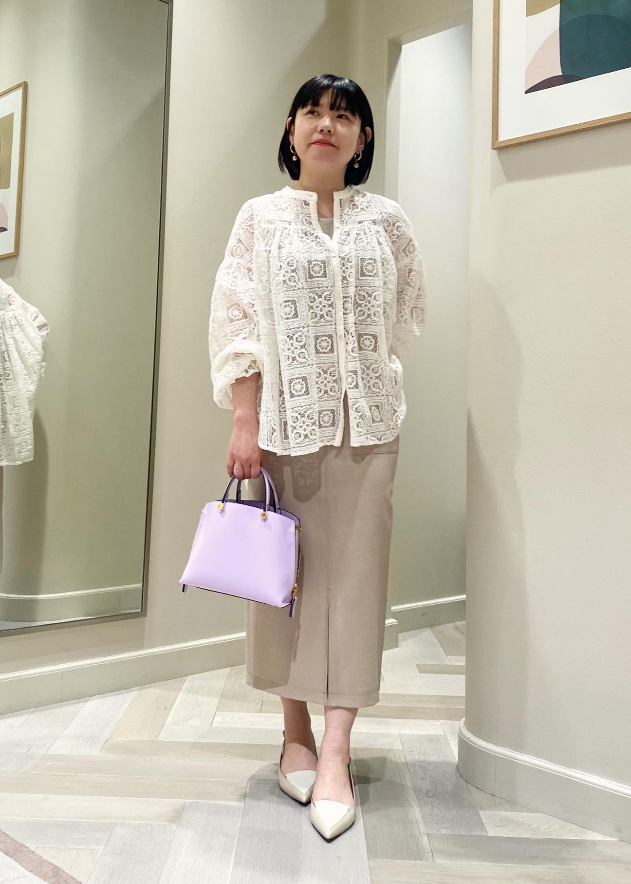 ベージュ×ラベンダーコーディネート