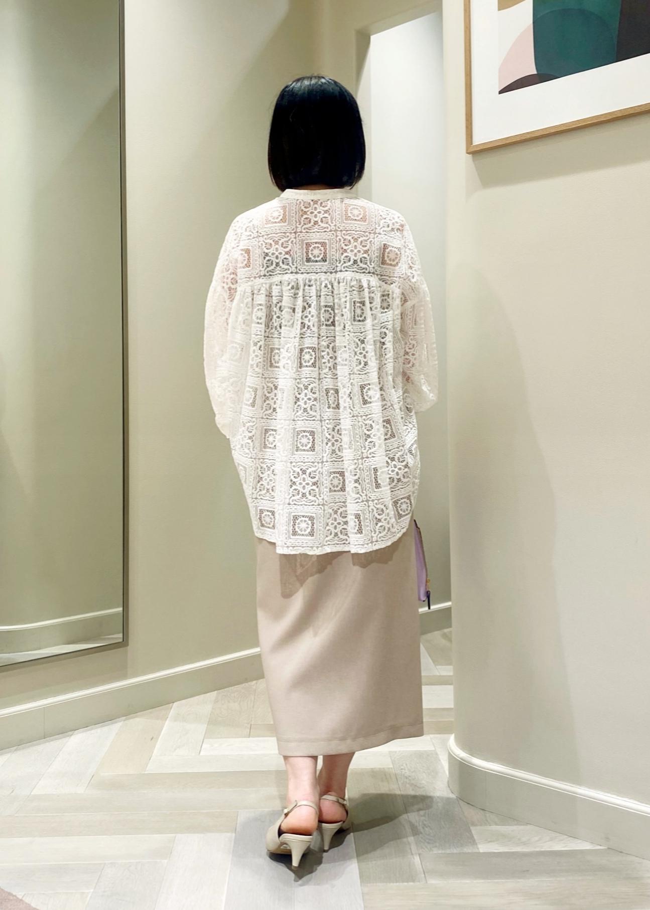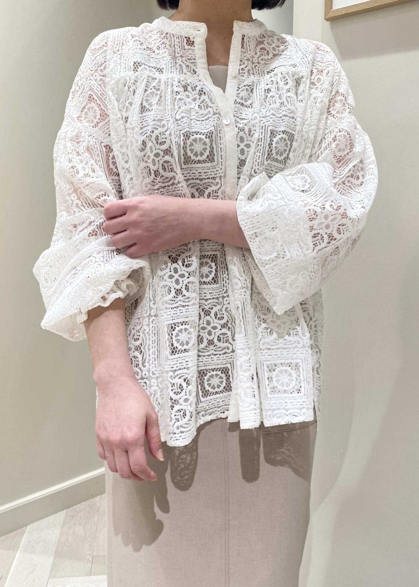 同系色のインナーを合わせて透け感を楽しめる1枚です。