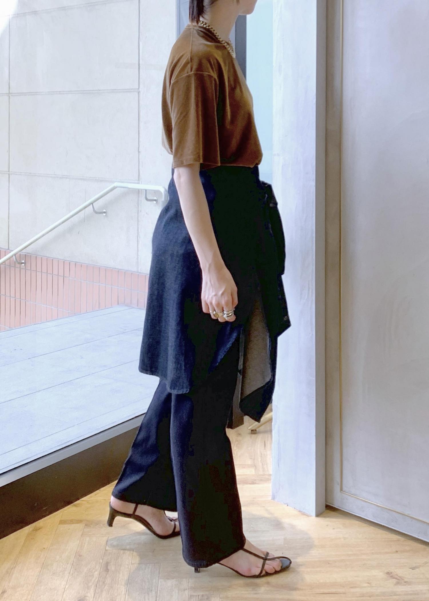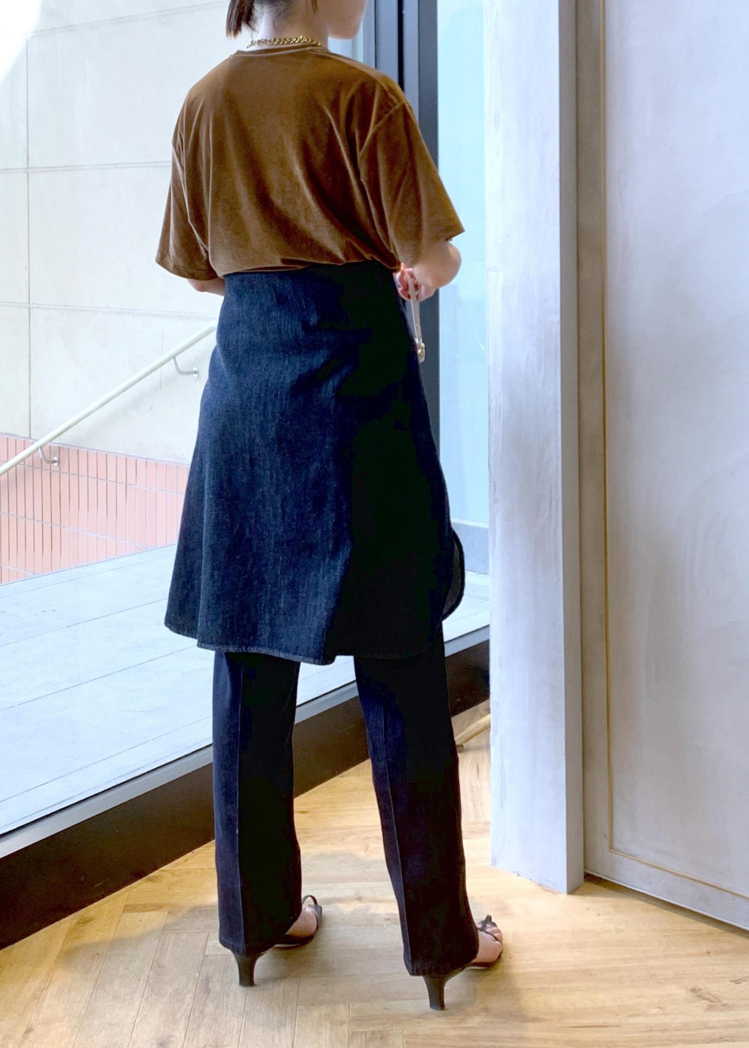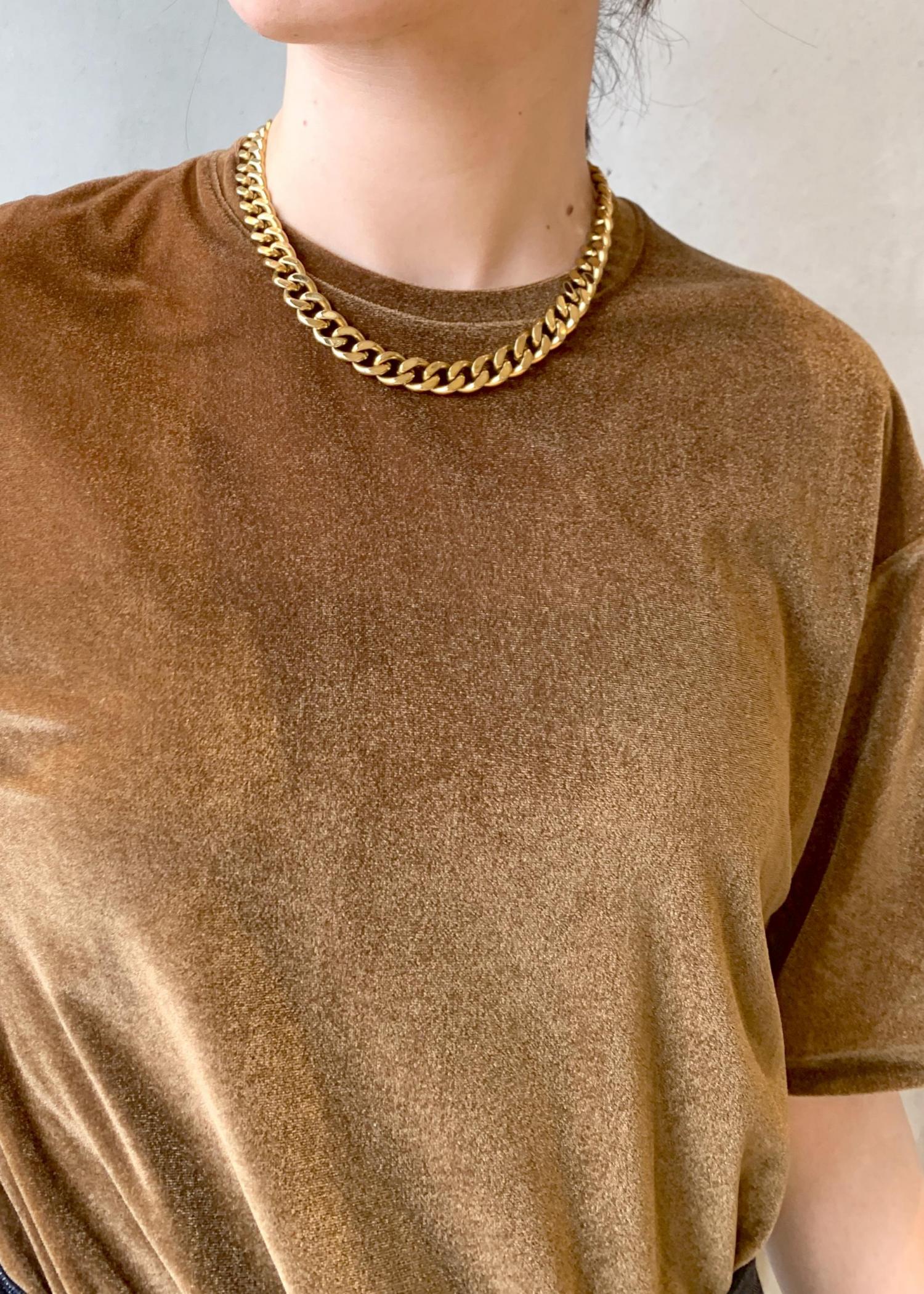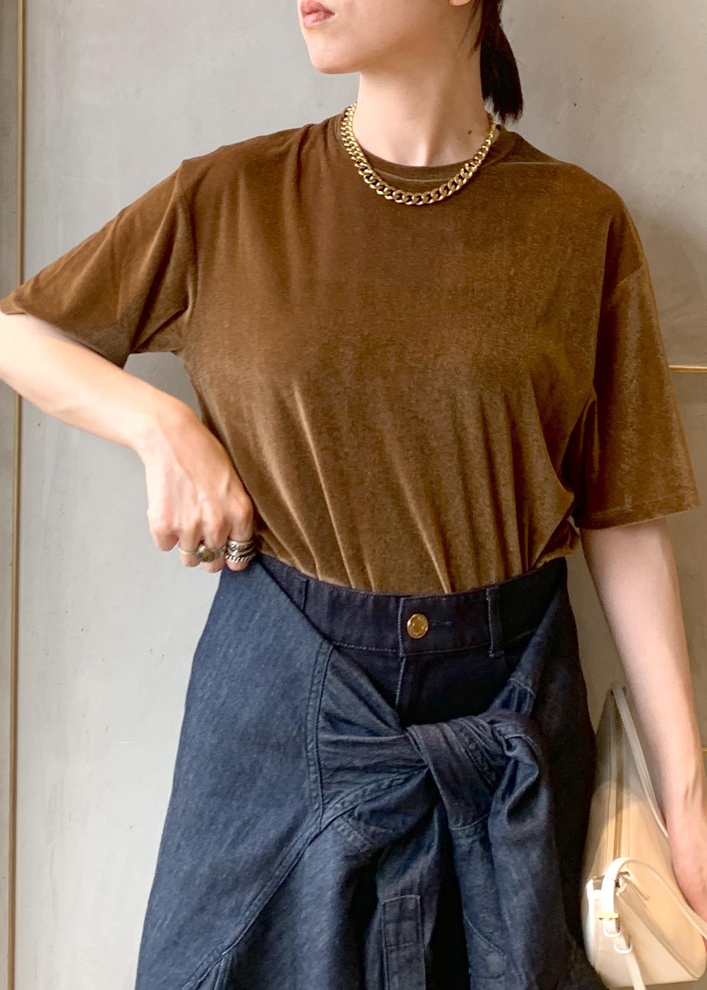 ベロア素材のTシャツを取り入れて、すこし秋先取りコーディネート。