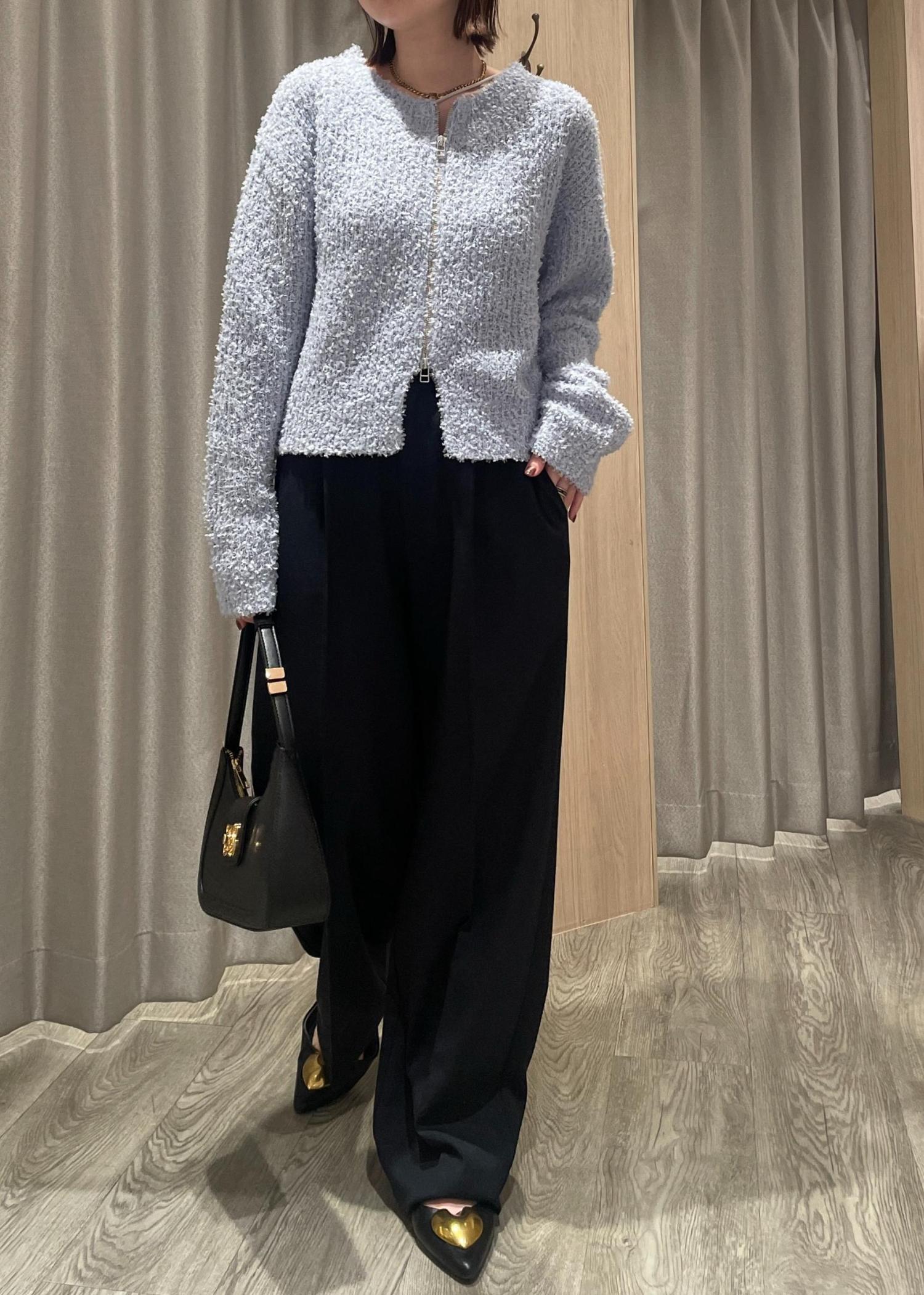 アウトレットVISリボンヤーンジップリブネックカーディガンブルー系 / F¥2,196レビュー素材感がかわいいジップカーディガン❤︎コンパクトなサイズ感でボトムは選ばず合わせやすいです。程よくゆとりもあるのでロンTやシャツをインナーで着てもかわいいです◎