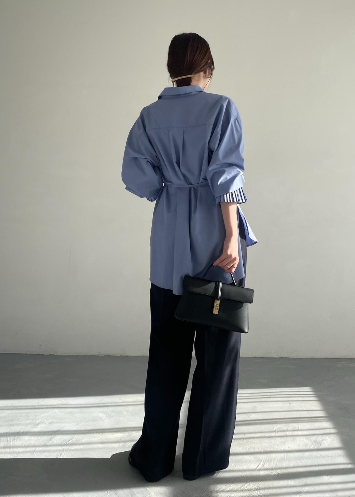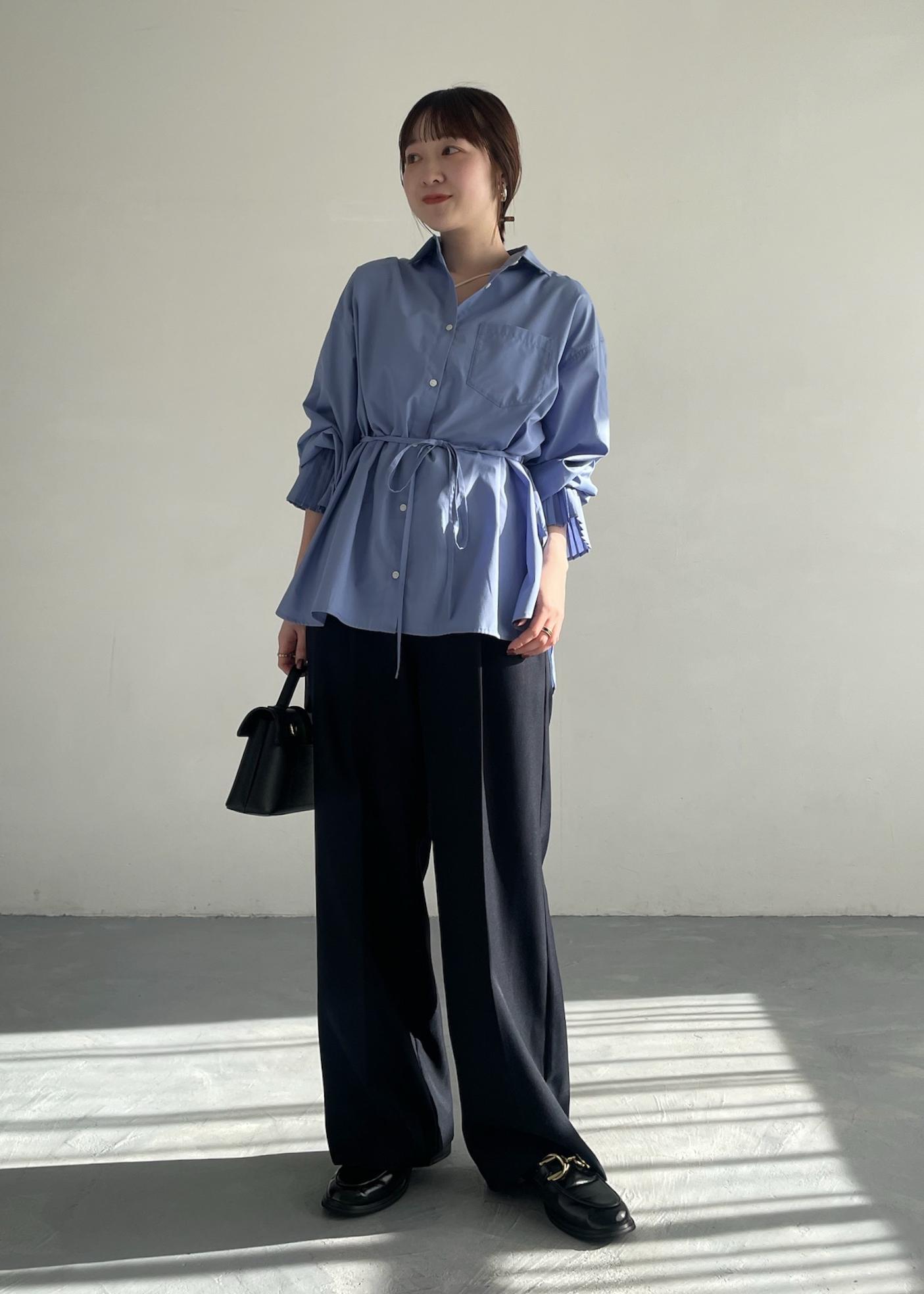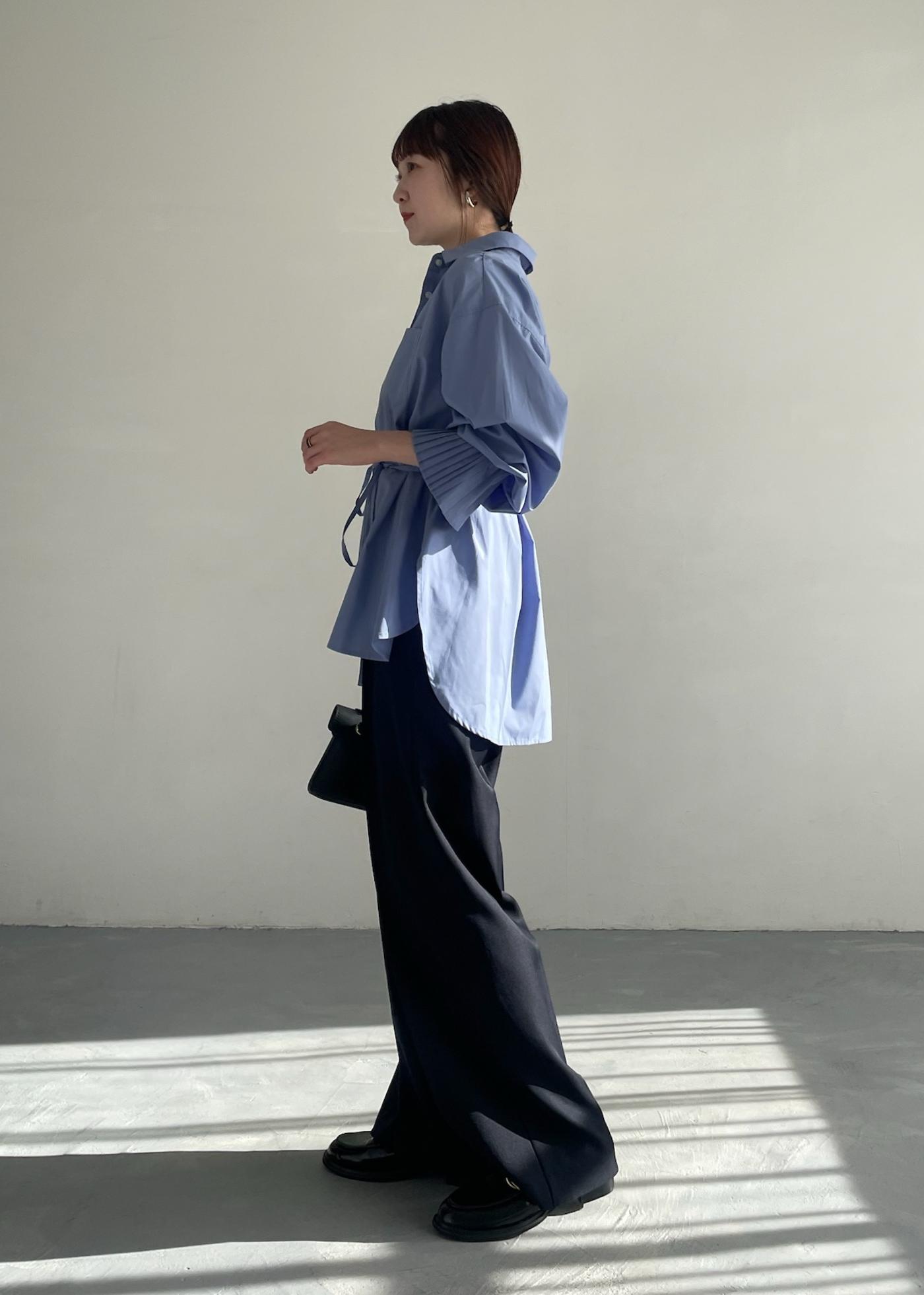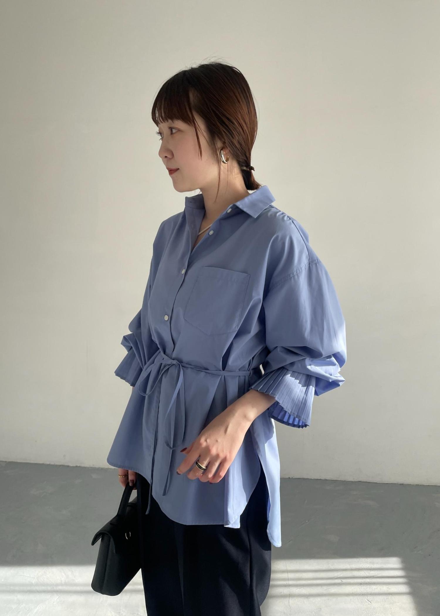 アウトレットVIS【洗える】プリーツスリーブフレアーシャツサックス / F¥2,372レビュー1枚で着映えするデザインシャツです!身長159cmでヒップにかかる着丈、サイドにスリット入りなので軽い印象でお召しいただけます◎