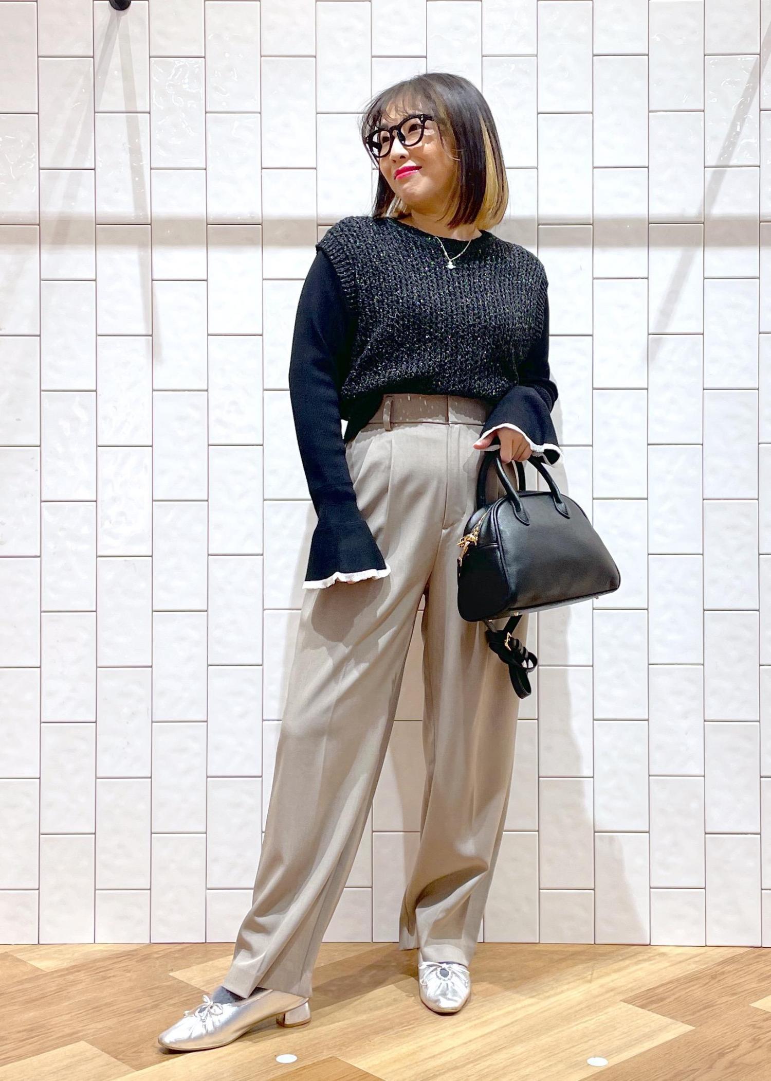 アウトレットROPÉ PICNIC透かし編みラメニットベストブラック / F¥3,194レビューラメの入った透かし編みベストです。カットソーやシャツとのレイヤードが楽しめます○
