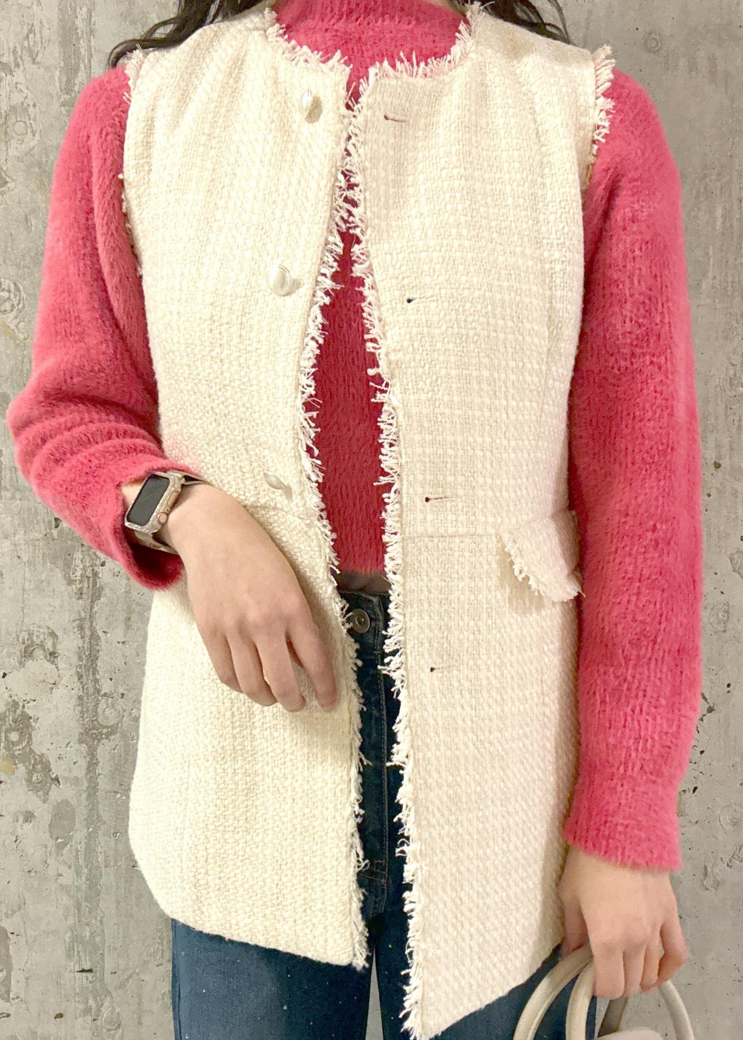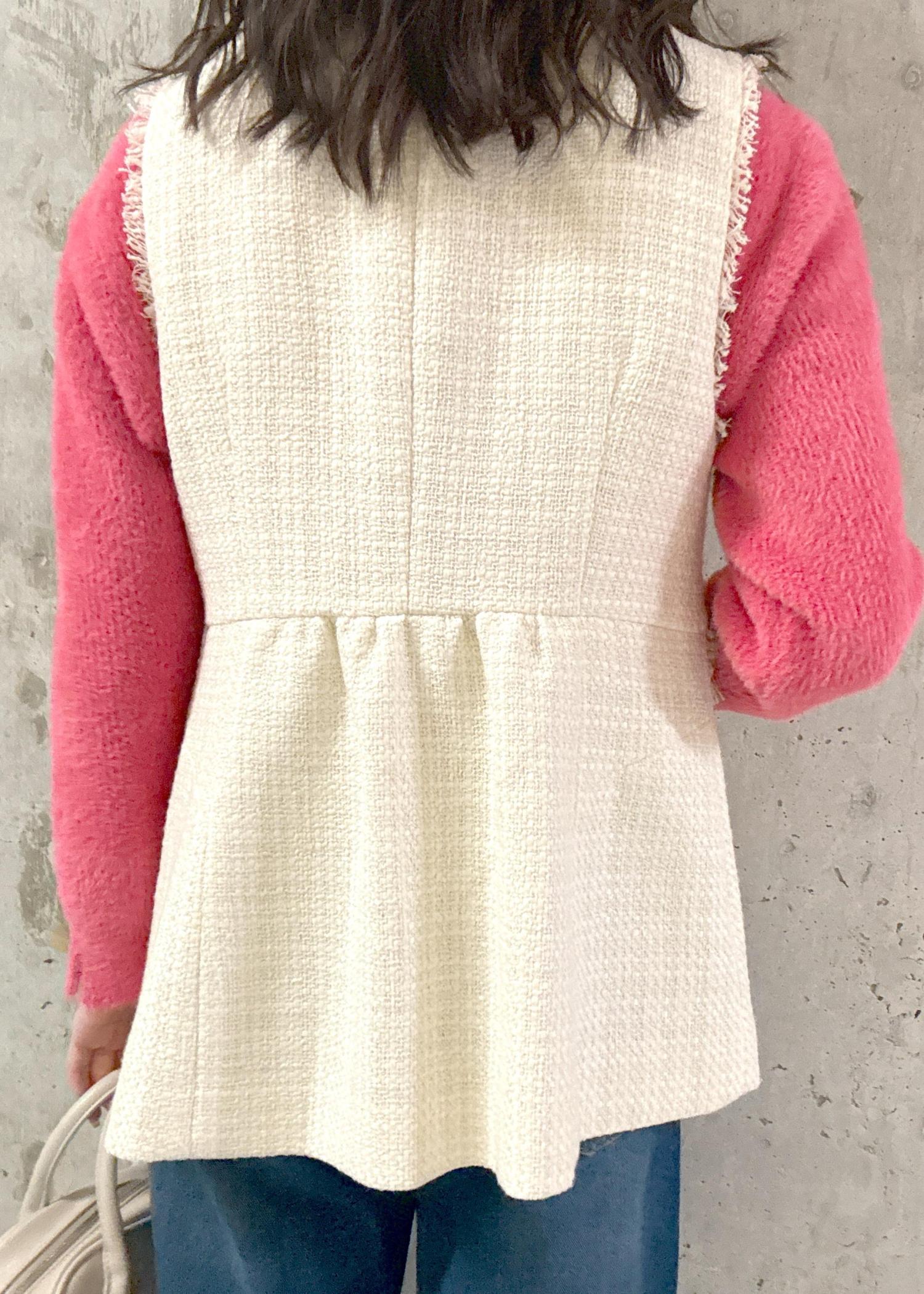 ROPÉ PICNICセレモニー・通勤対応/ツイードジレベストオフホワイト / 38¥8,789レビューペプラムのシルエットで、ツイード素材が華やかです。