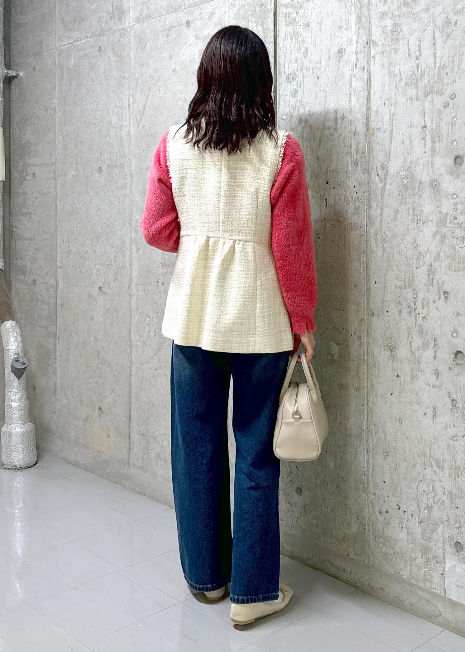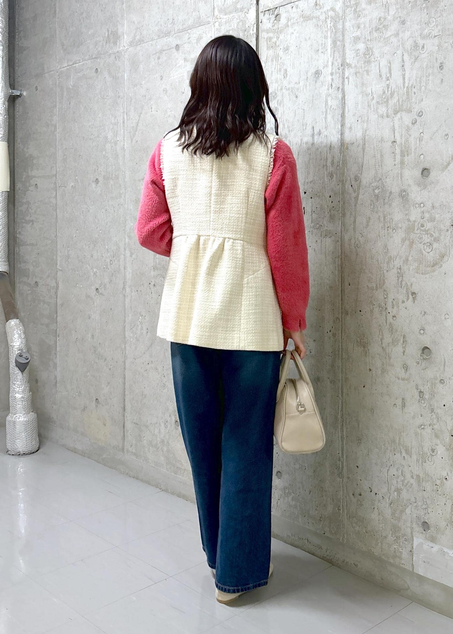 ジレとデニムで春らしいカジュアルなコーディネートに仕上げました◎