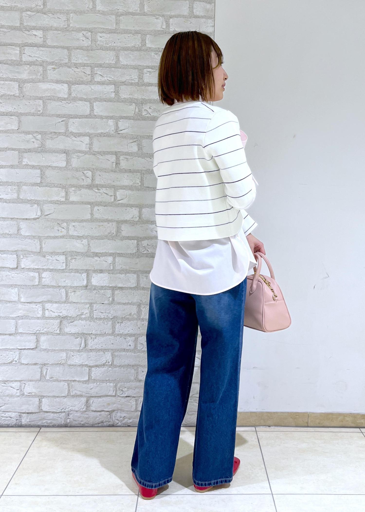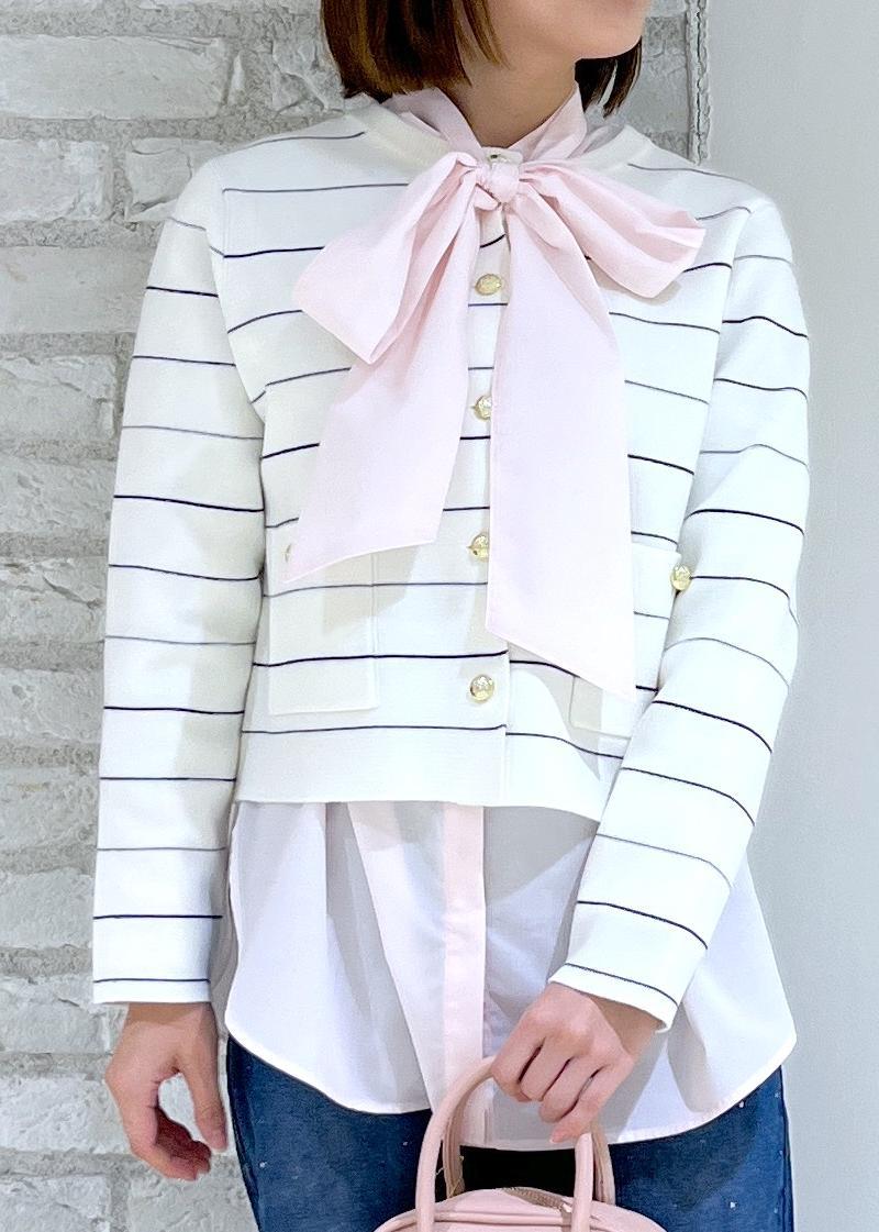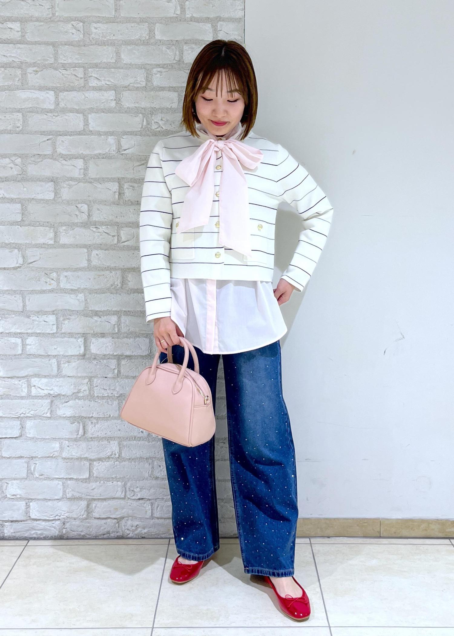 柔らかなピンクのリボンブラウスを主役にデニムで合わせたカジュアルコーデ♪