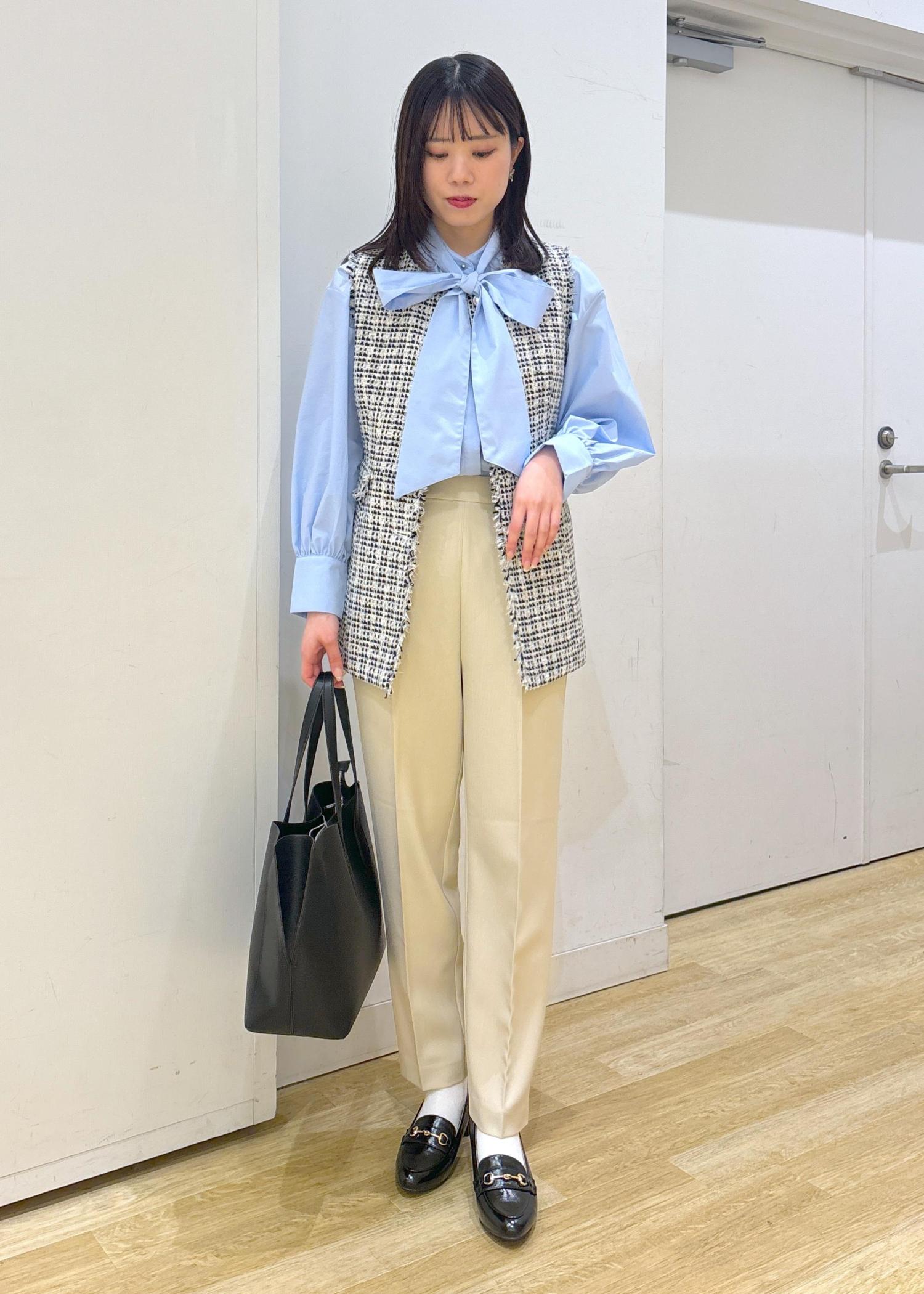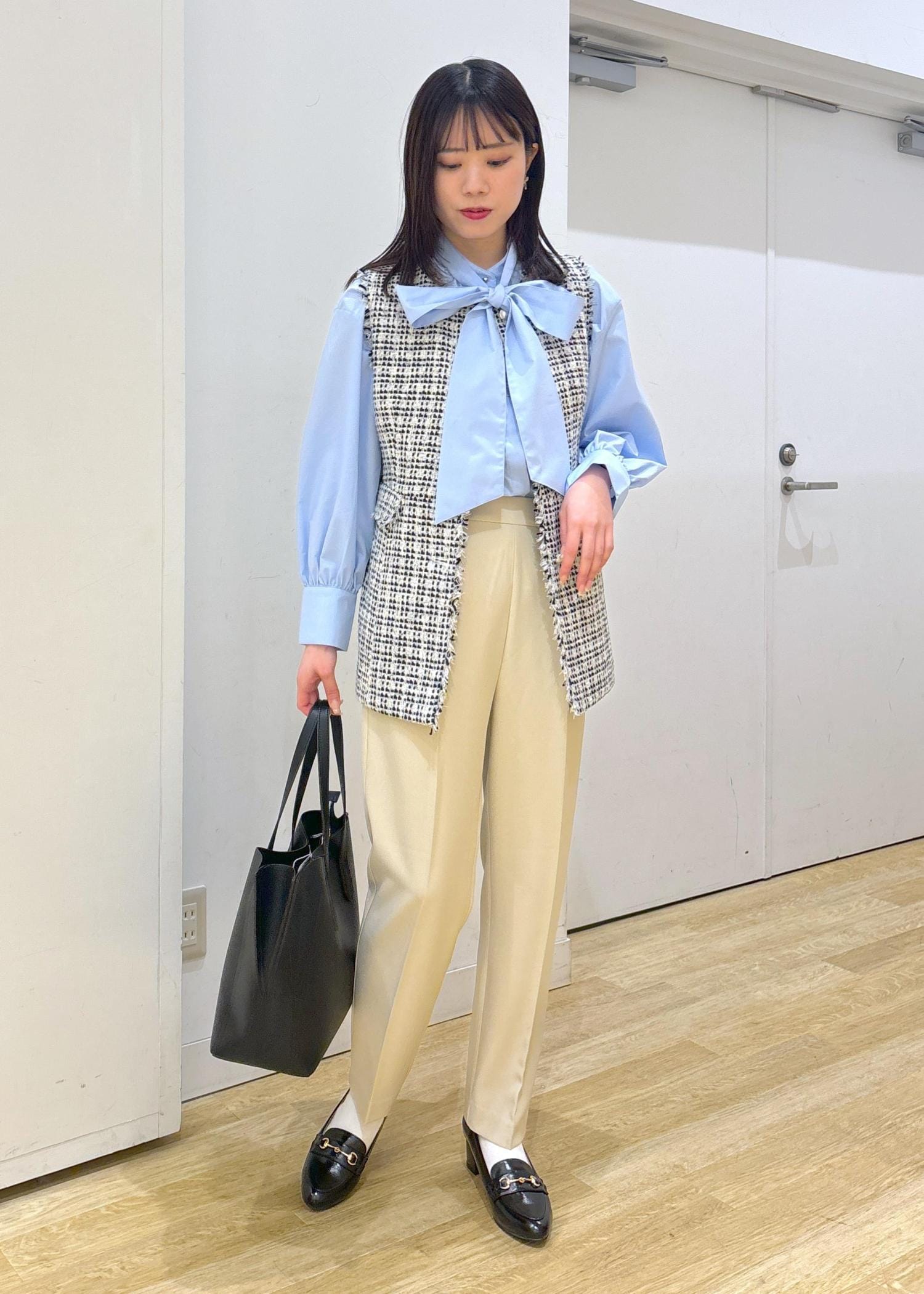 入学、卒業などで使えるセレモニーコーデをブルーのブラウスを軸に3パターン組んでみました◎
