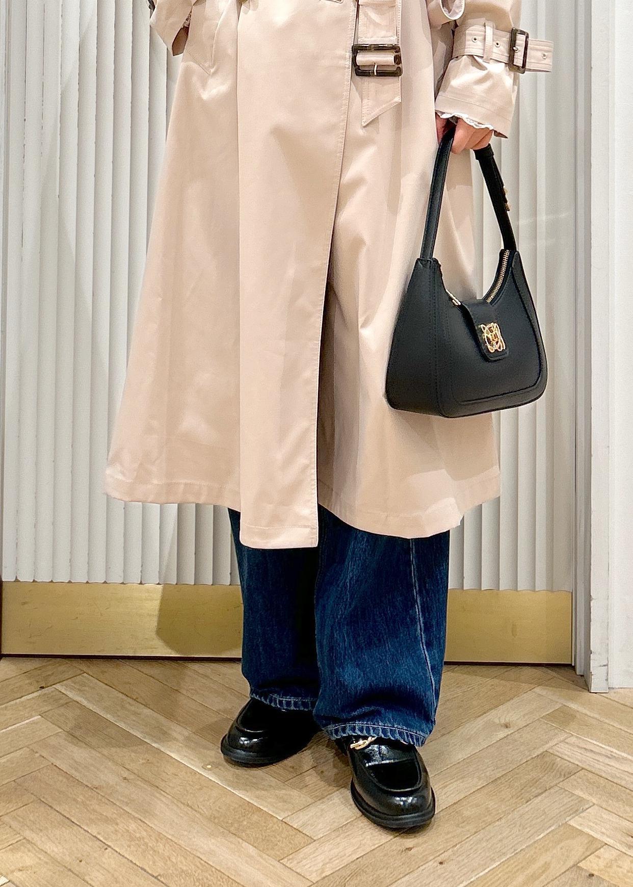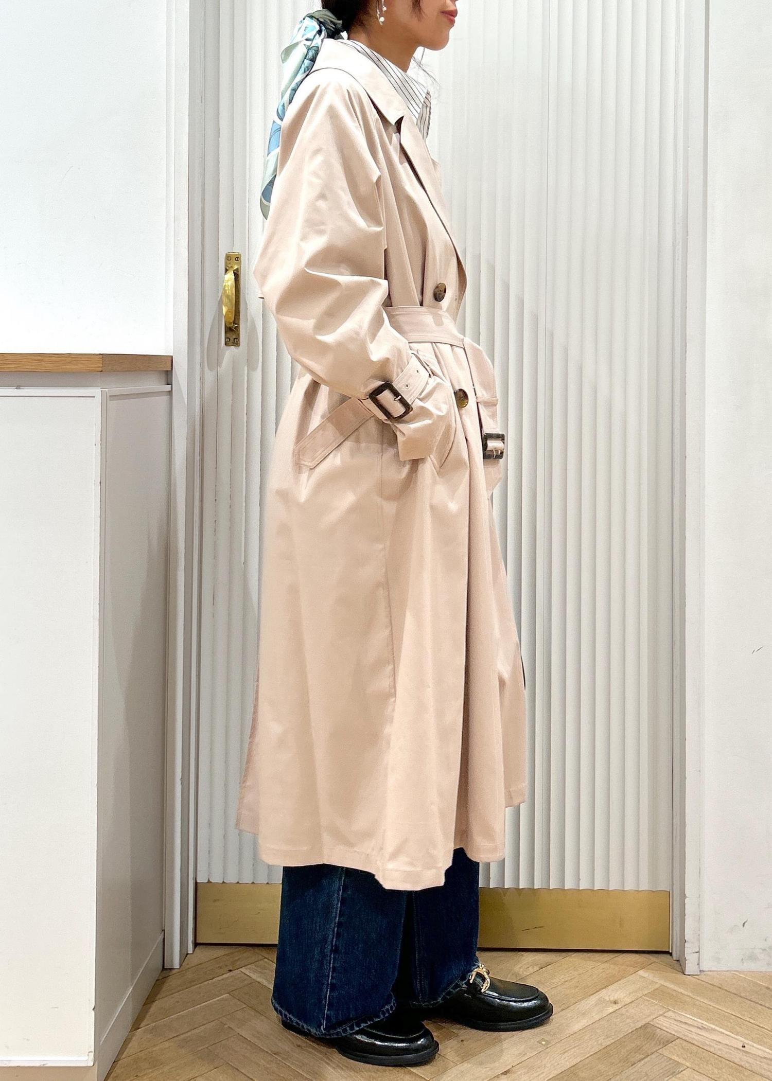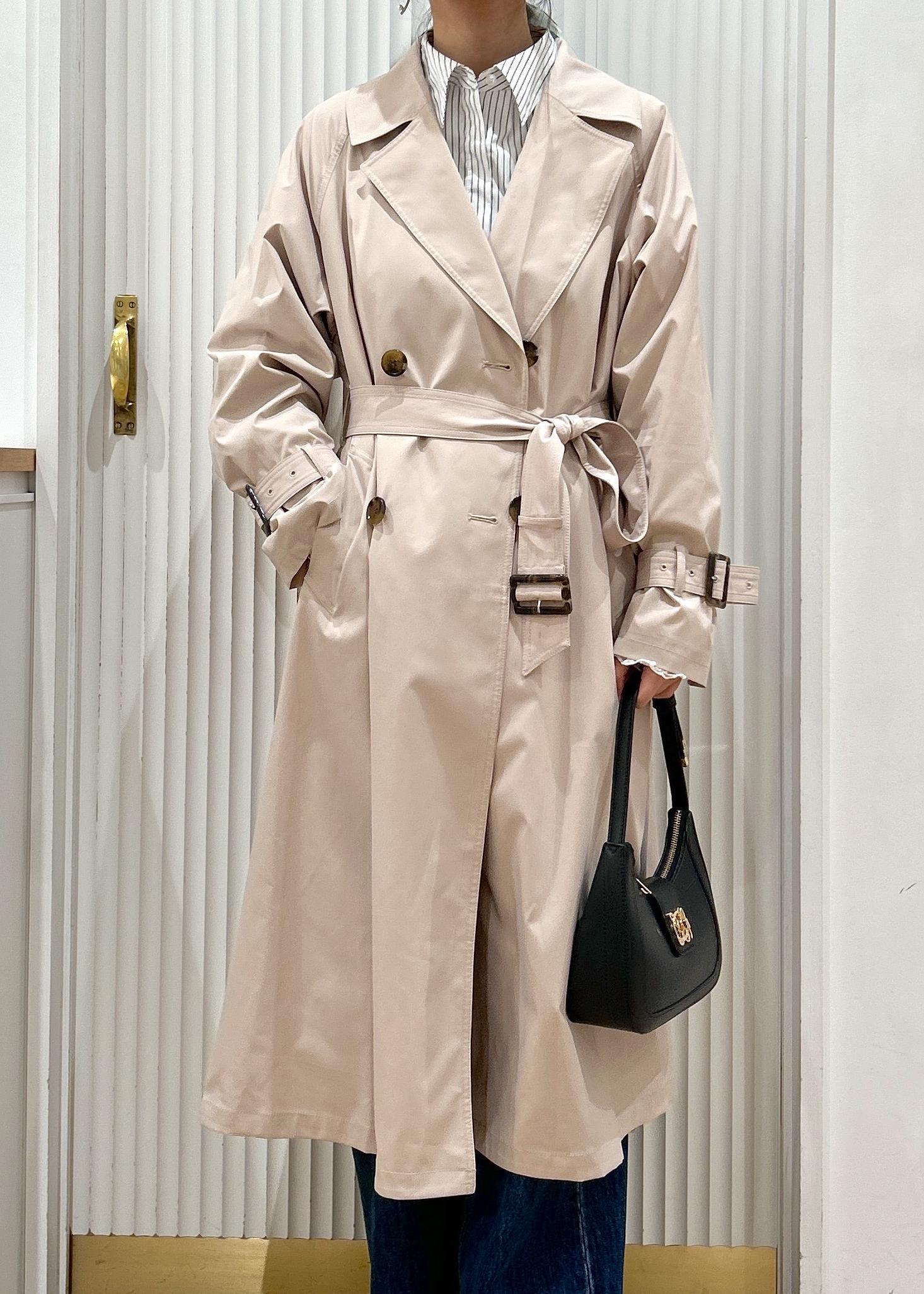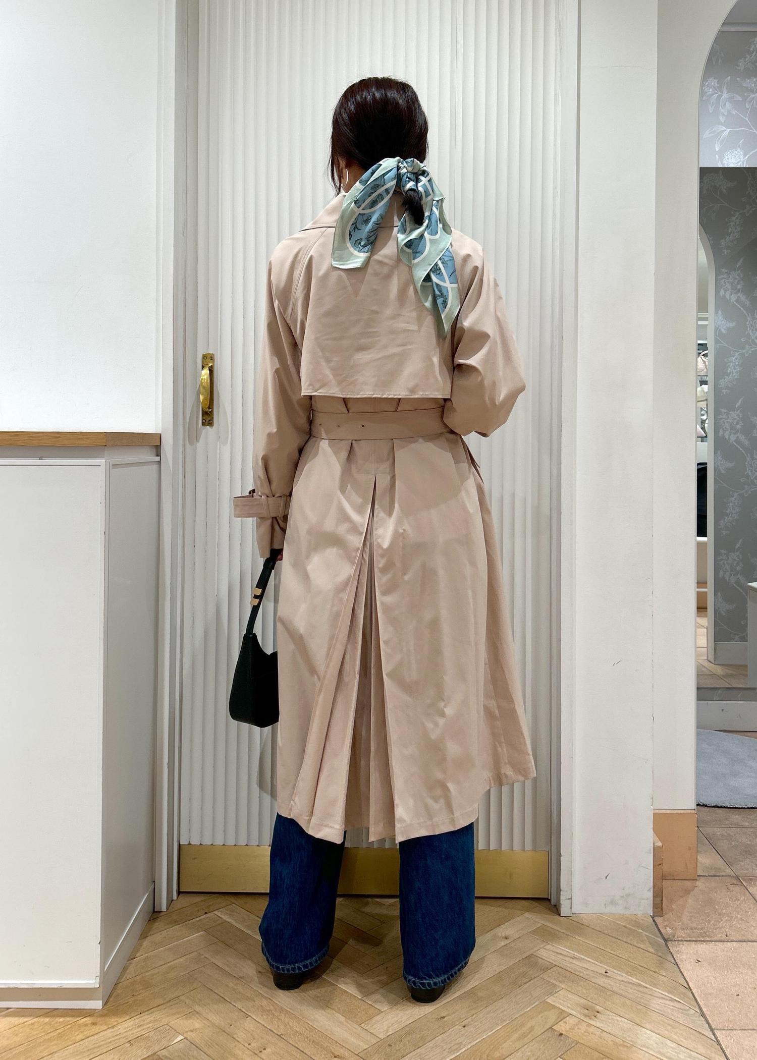 デニムとシャツのコーディネートに春の新作のトレンチコートを合わせました。コート、軽くてとっても着やすいです♡