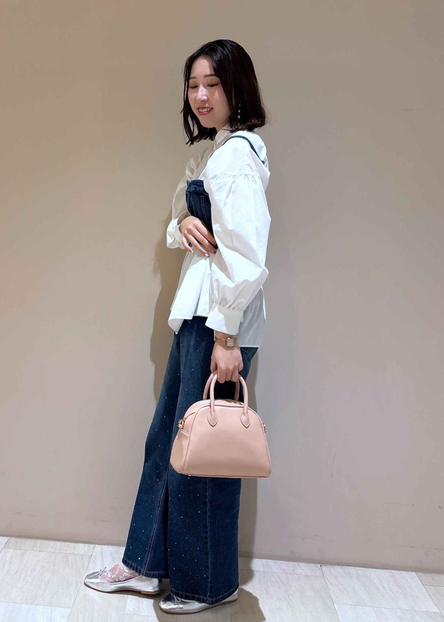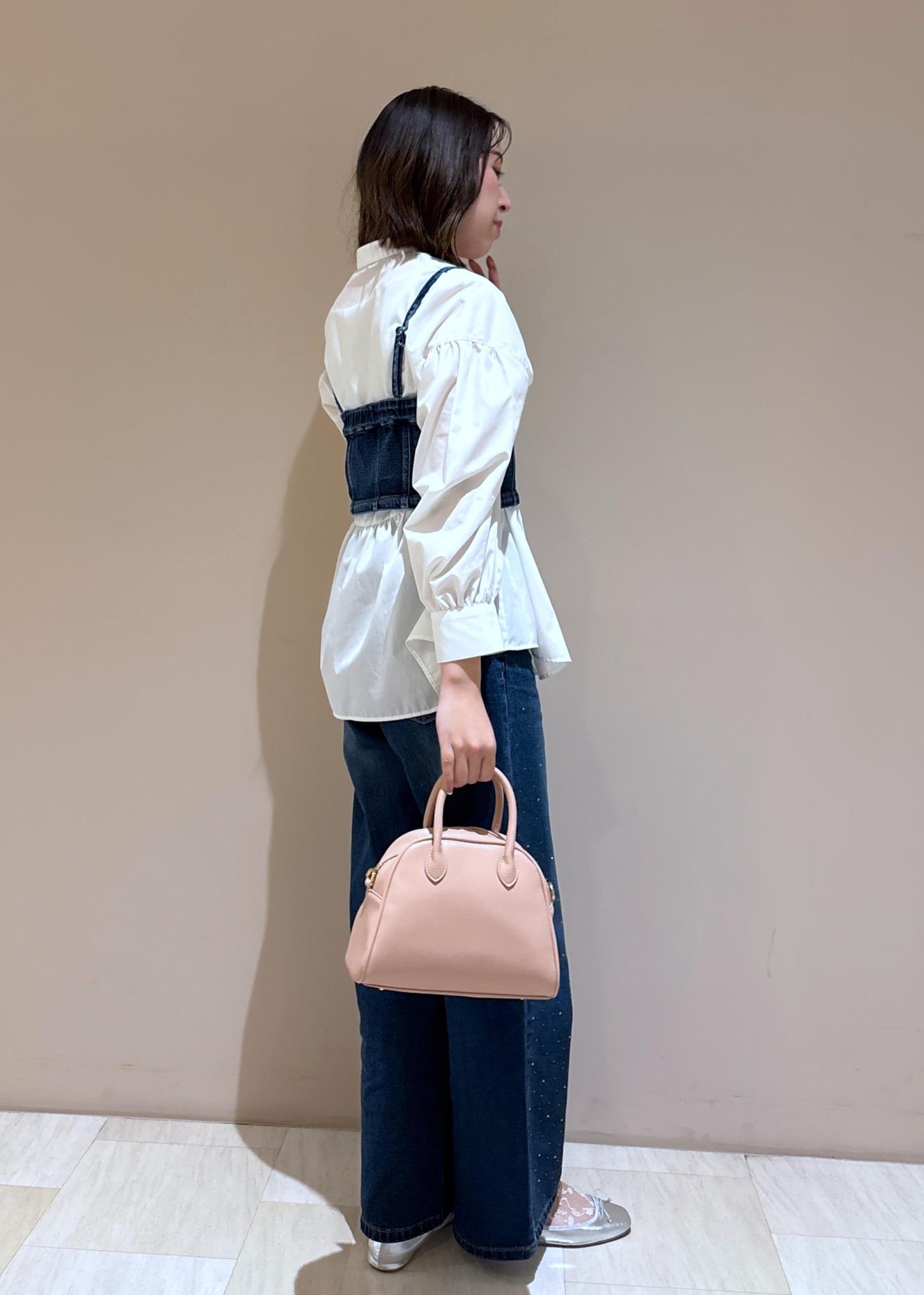 足元はシルバーのバレエシューズにピンクのバッグを選ぶのが◎
