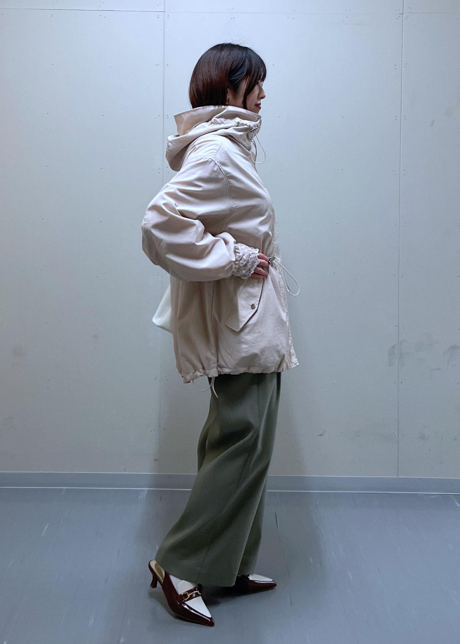 ウエストを絞れるので、着膨れせずスッキリした印象で着ていただけます。