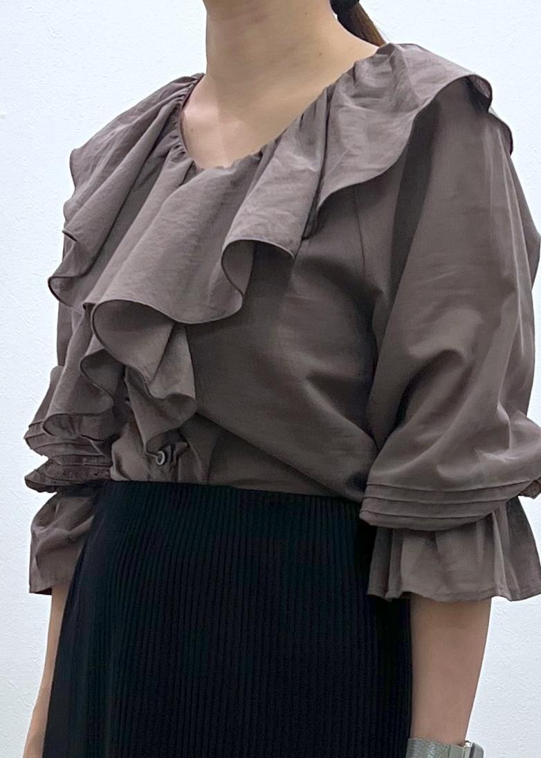 アウトレットROPÉ PICNIC【接触冷感・通気性】お着軽シャツシリーズ/綿ボイルフリルブラウスブラウン / 38¥4,391レビュー少し透け感があり、抜け感がでてこなれ感がでます。