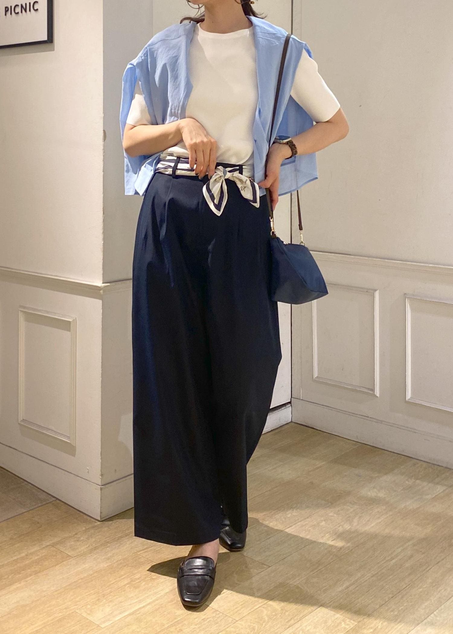 フォルムはスマートでスッキリした印象なので。ボリュームのあるボトムやロングボトムもバランス良くまとまります。