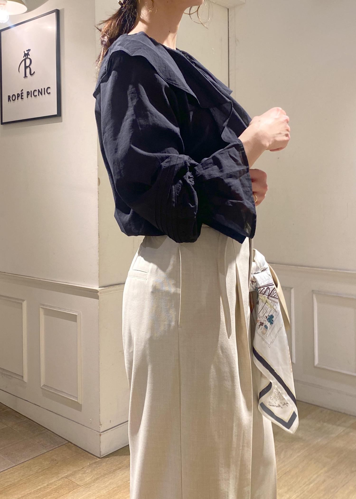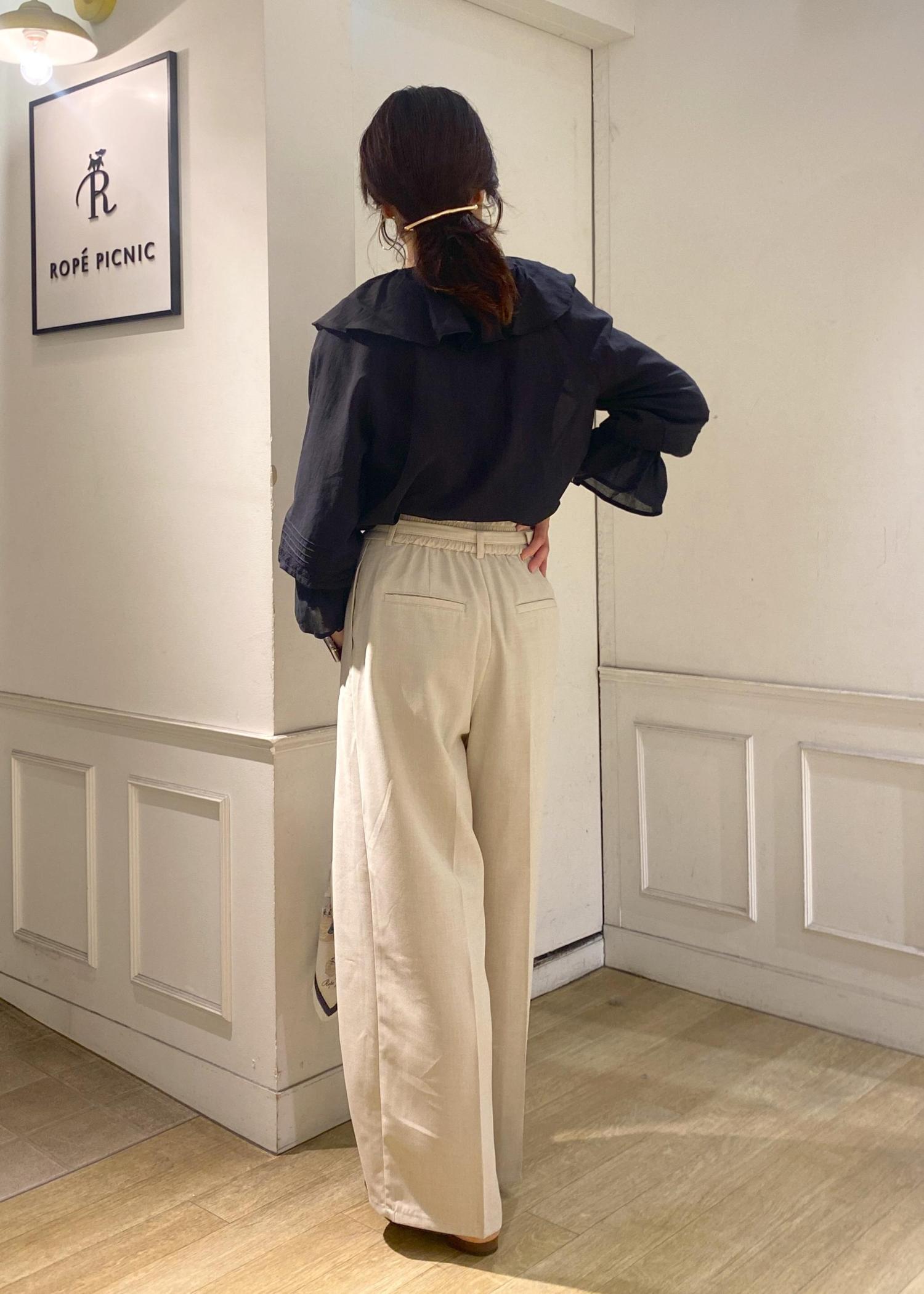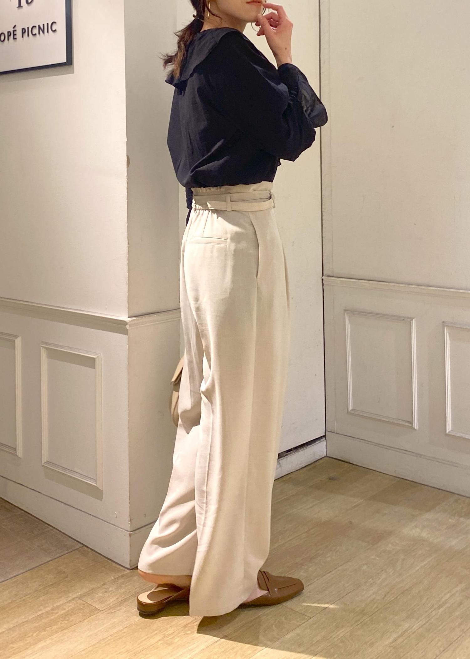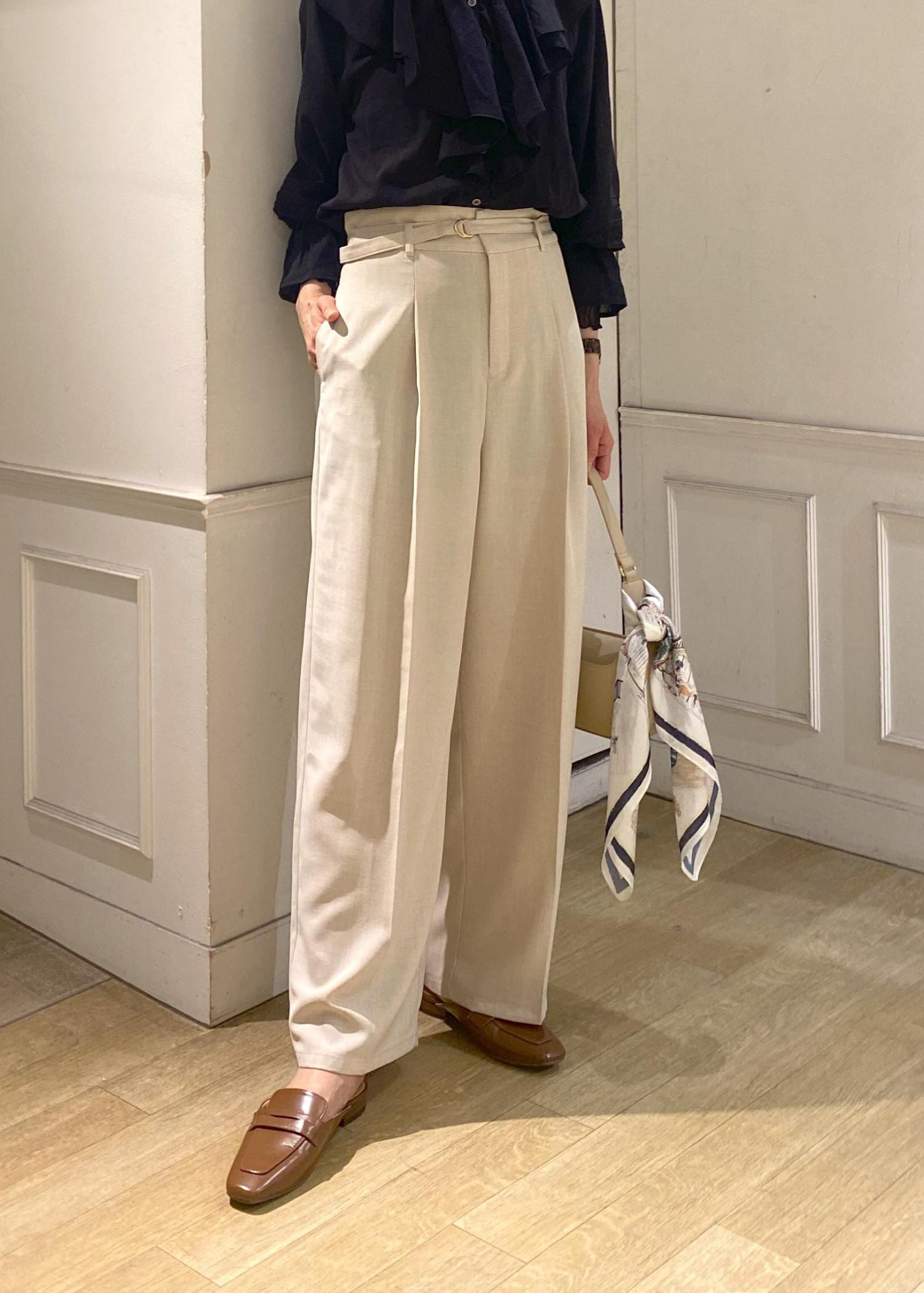 タック入りで腰回りに立体感があり気になる下腹をカバーしてくれます。