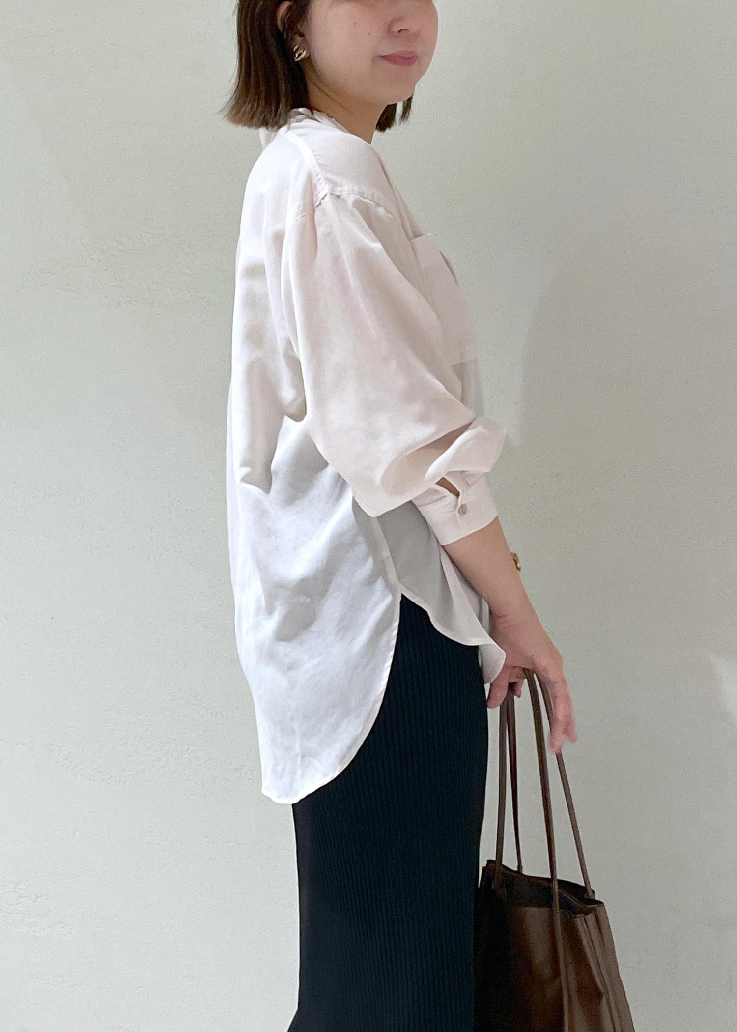 ROPÉ PICNIC着丈が選べるバンドカラー無地シアーシャツピンク / 38T¥5,489レビュー後ろはおしりがすっぽり隠れる長さで、前は気になる下っ腹や足の付け根の張りなどがカバーできる長さです。
