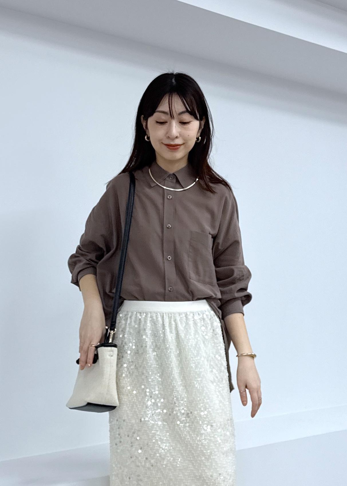 アウトレットROPÉ PICNIC【接触冷感・通気性】お着軽シャツシリーズ/綿ボイルバックタックシャツブラウン / 38¥2,795レビュー麻のような涼やかな見た目ですが綿素材なので優しい肌あたりです。シャツのパリッと感はなく、ガーゼのような軽さと柔らかさがあります。身幅、袖幅共にリラックス感のあるサイジングです。ヒップがほとんど隠れる着丈ですが深めのスリット入りでアウトで着てもスッキリとした印象です。