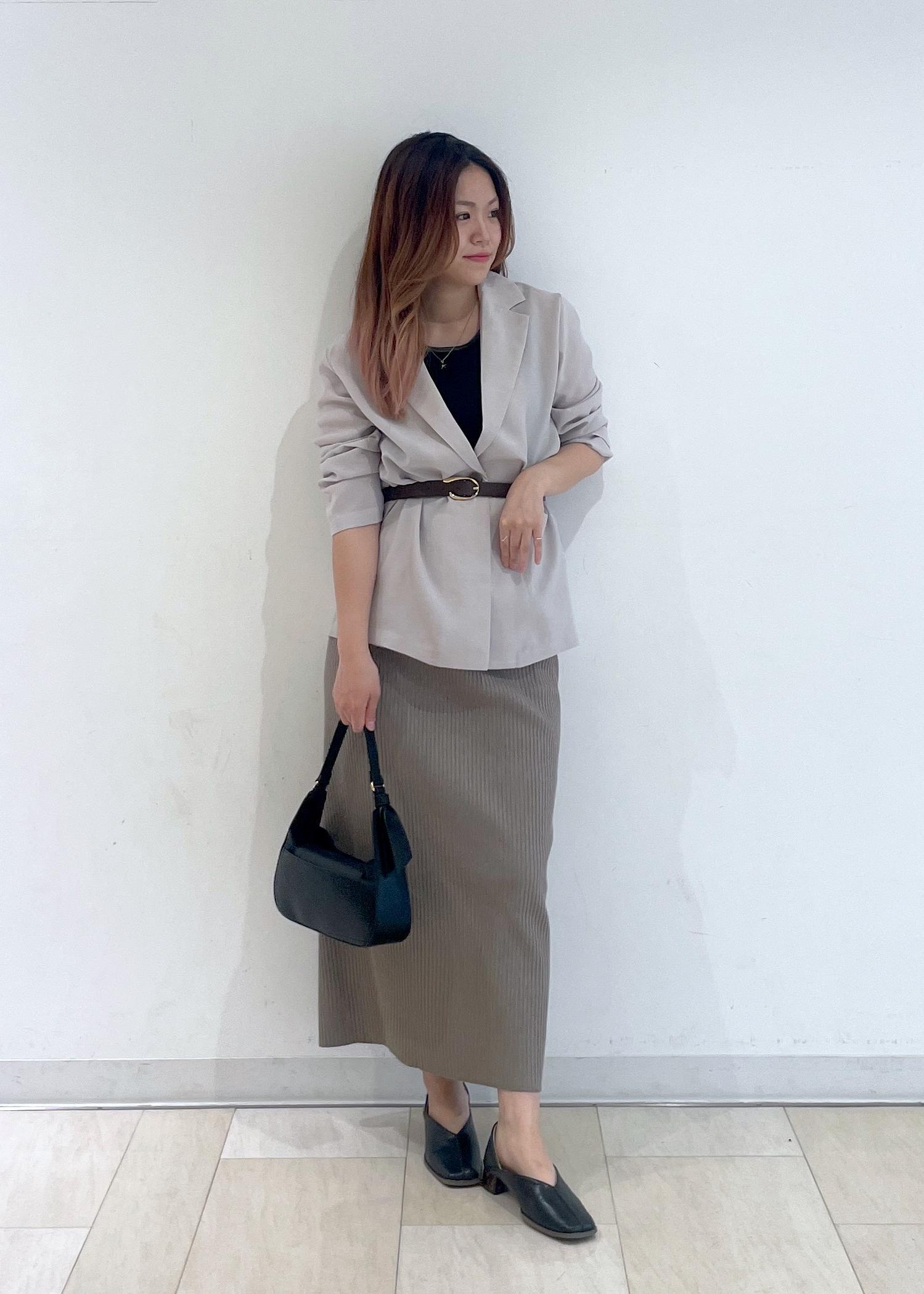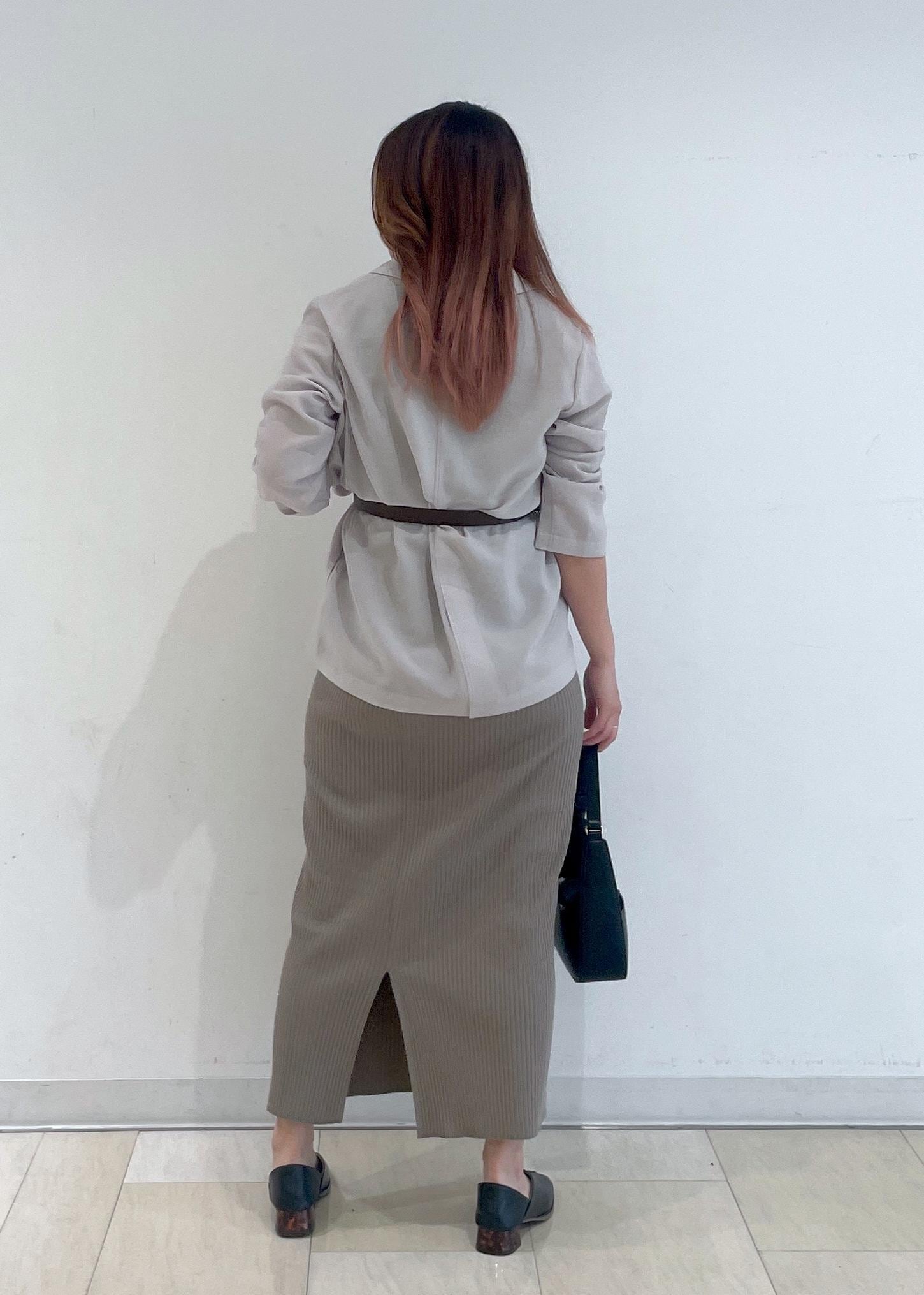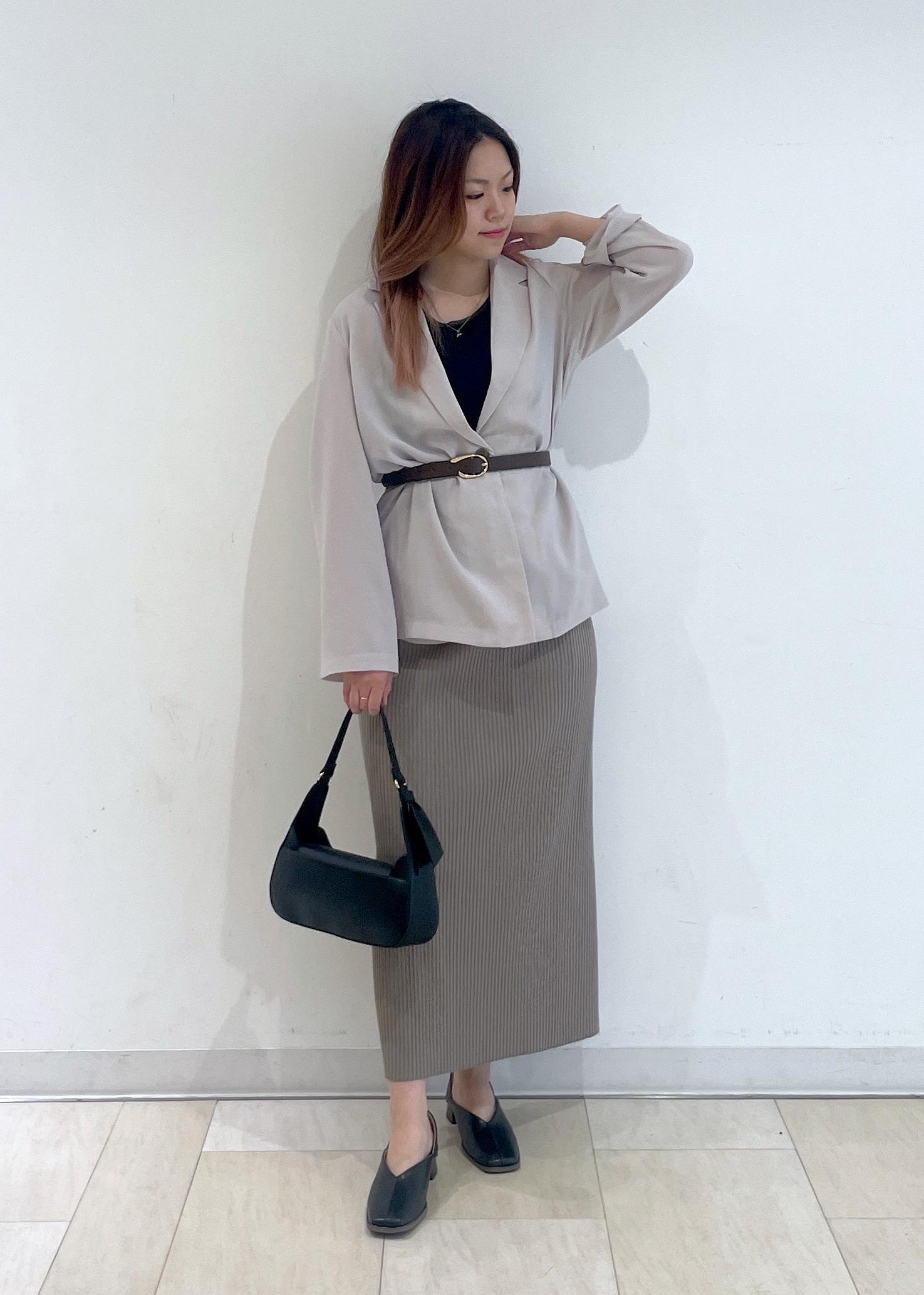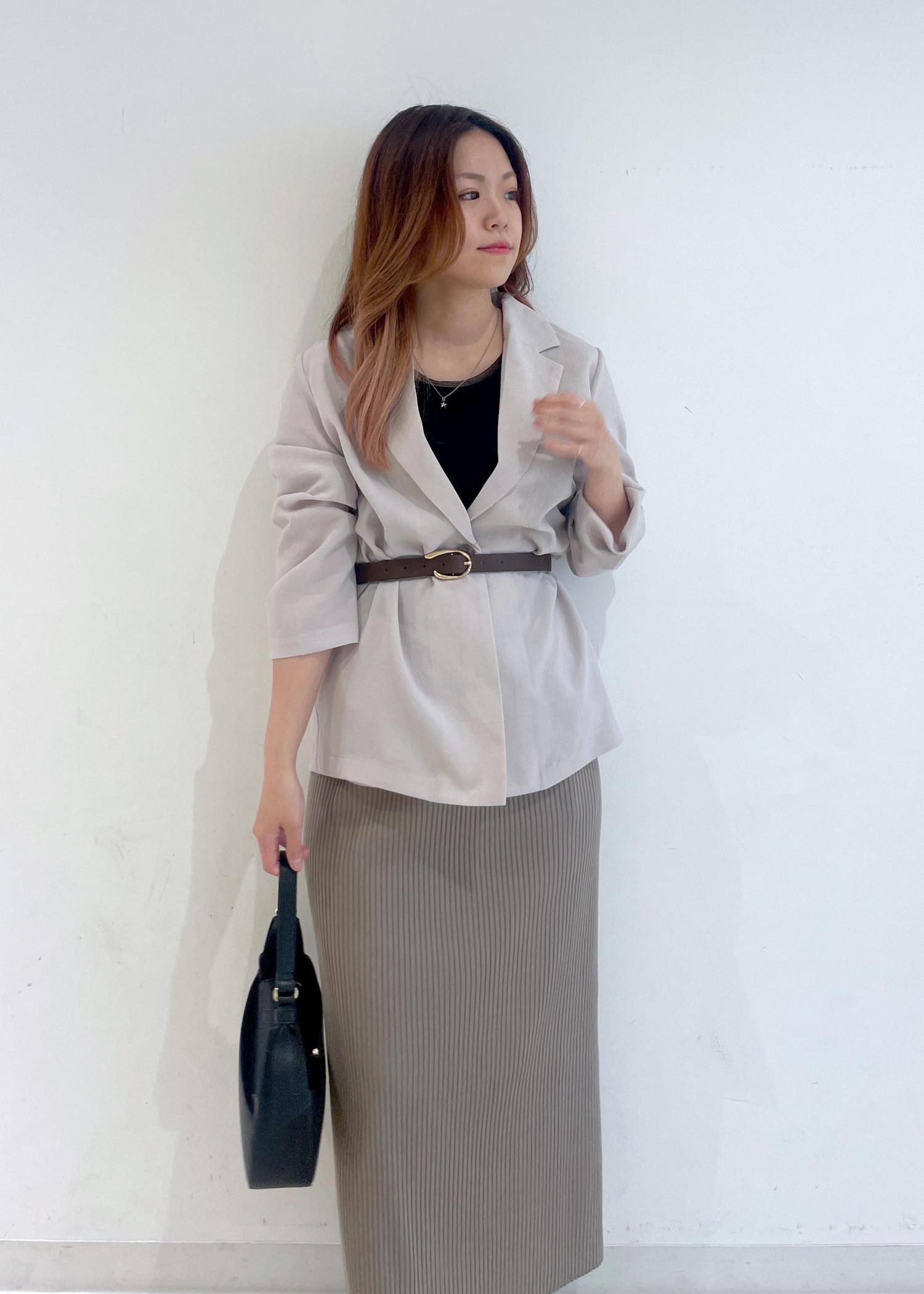 ベルトでウエストマークできるので、ゆったりしたサイズ感のジャケットでもスッキリ着れます◎