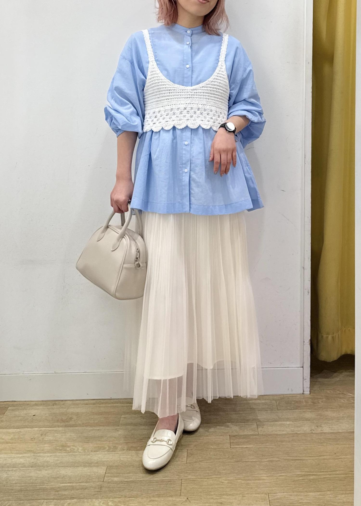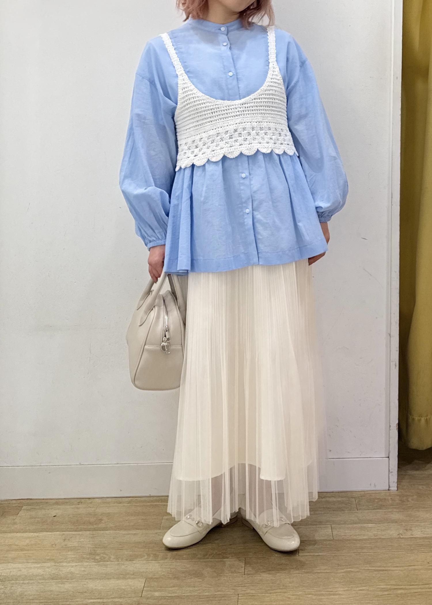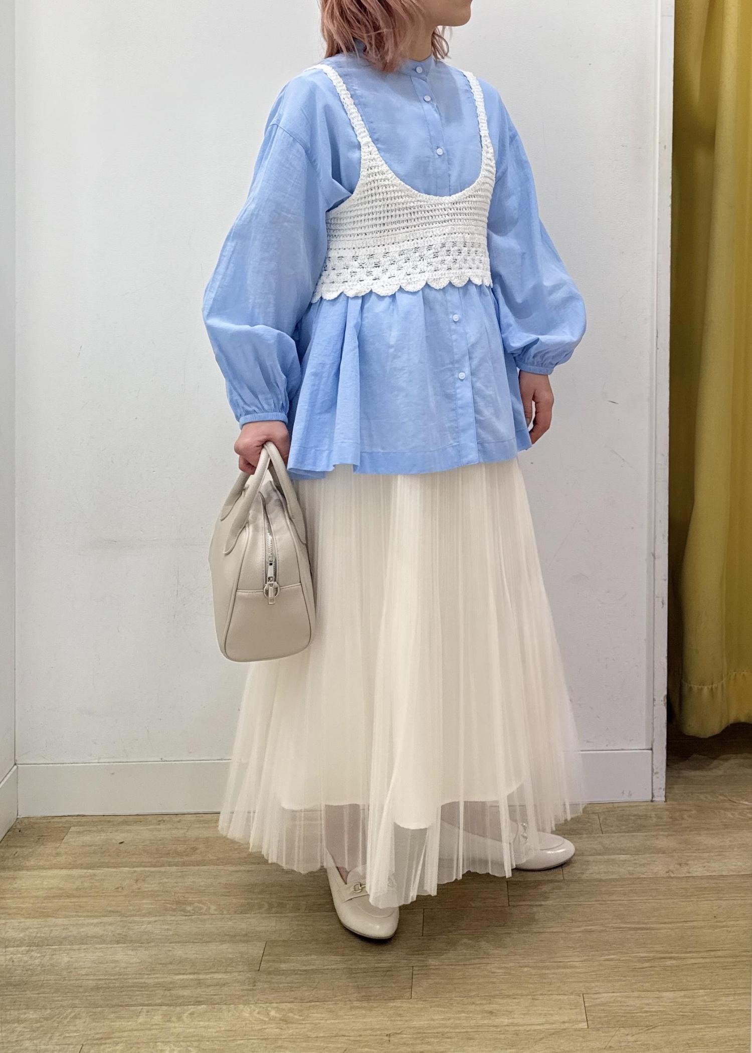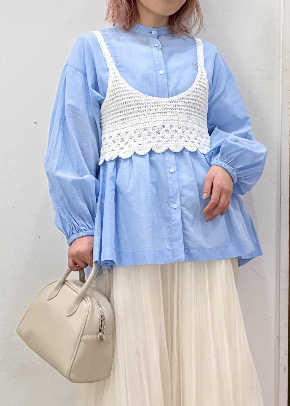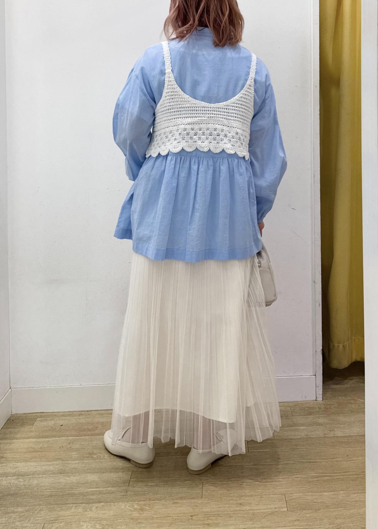 クロシェ編みのビスチェは裾がスカラップデザインになっているのもポイントです。 -