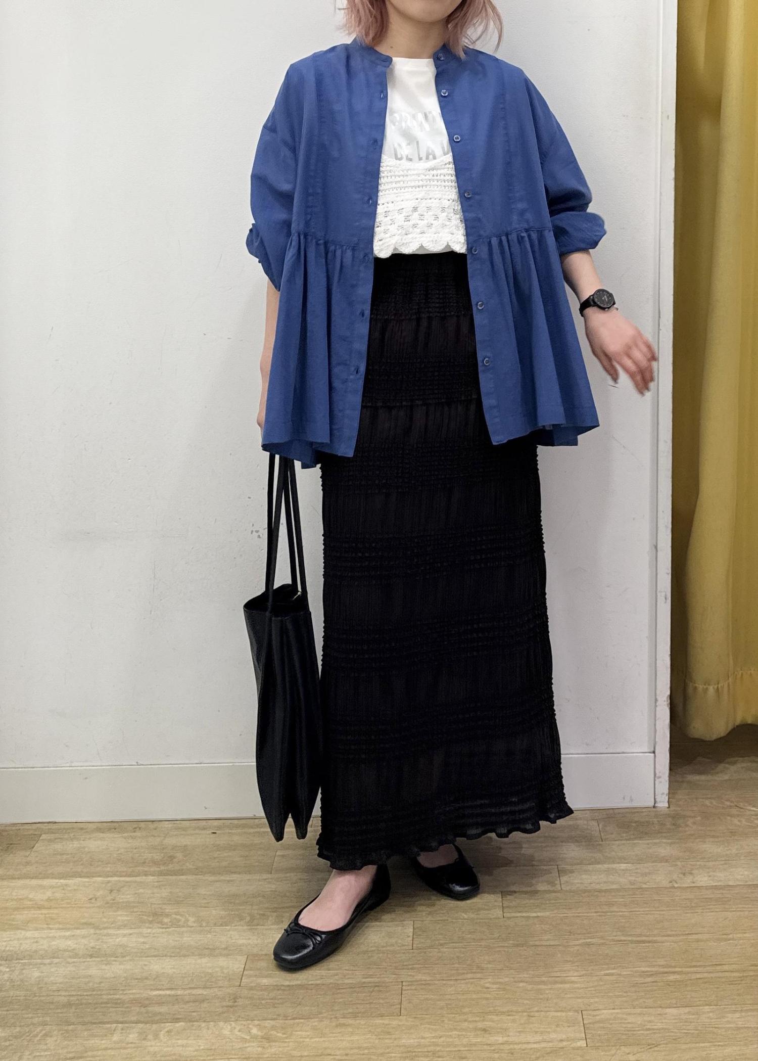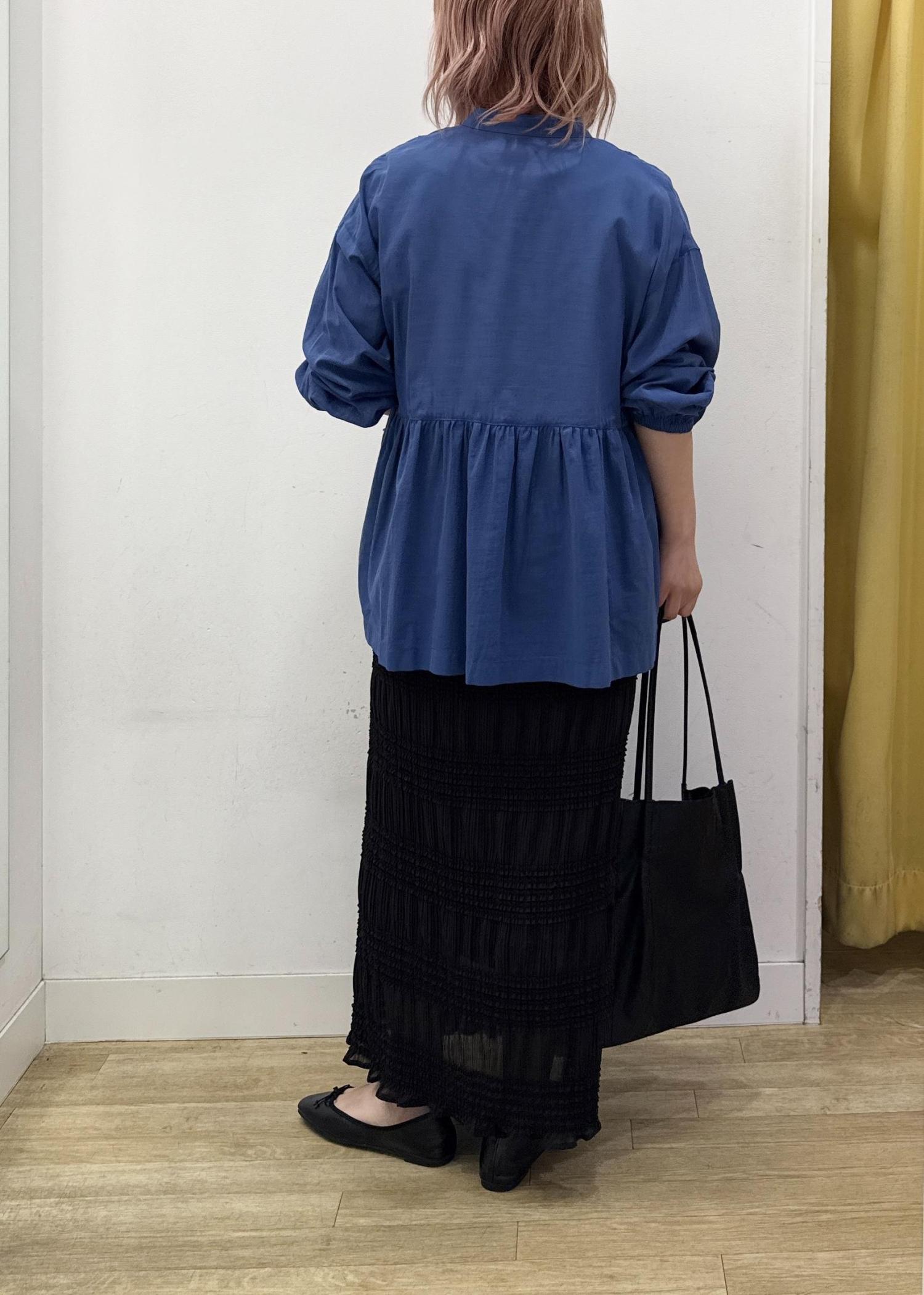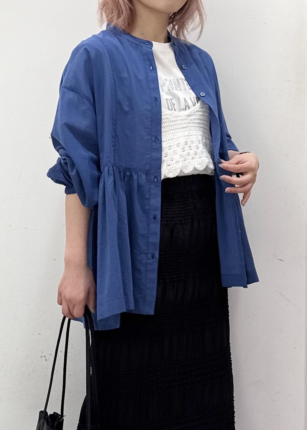 あざやかなブルーカラーのコットンシャツは羽織りに!