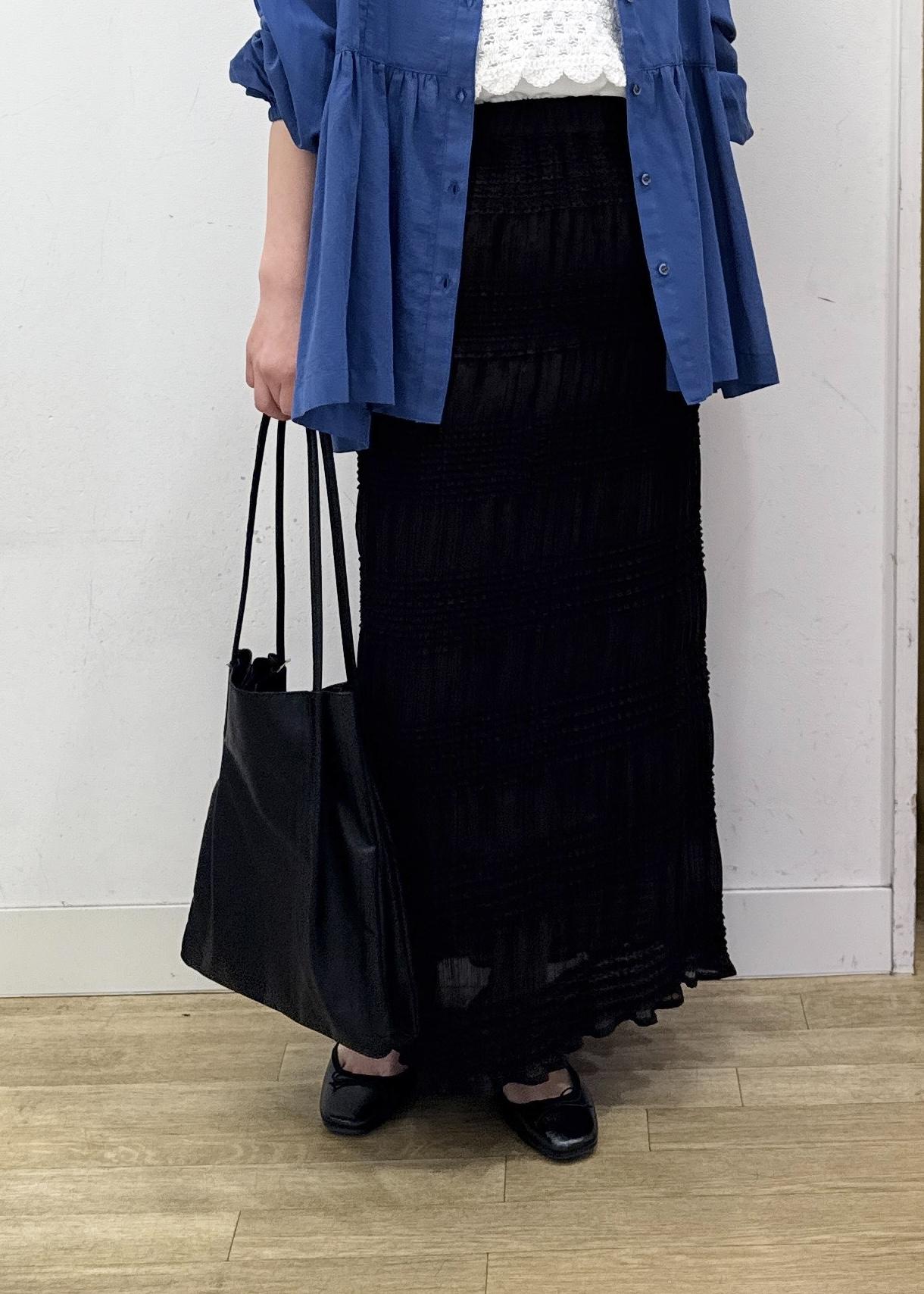 プリーツとフリルが細かく入ったデザインのスカートは、気になる身体のラインを拾い過ぎないキレイなシルエットです。 -
