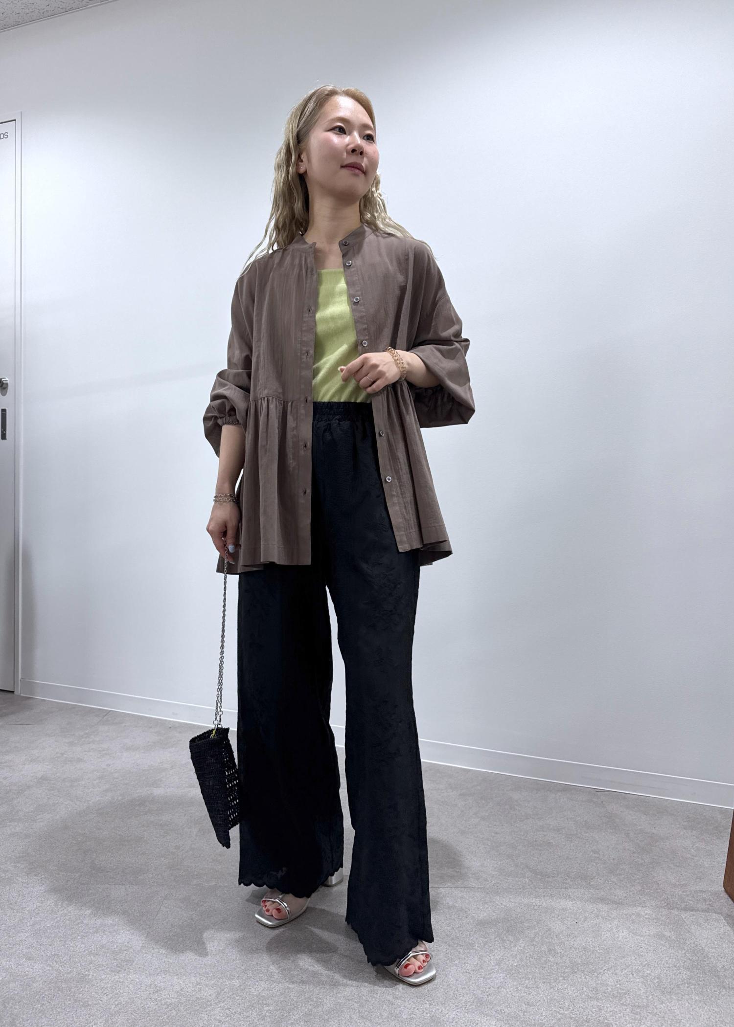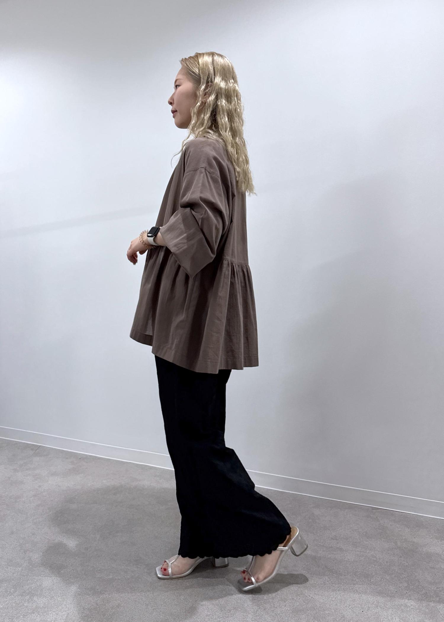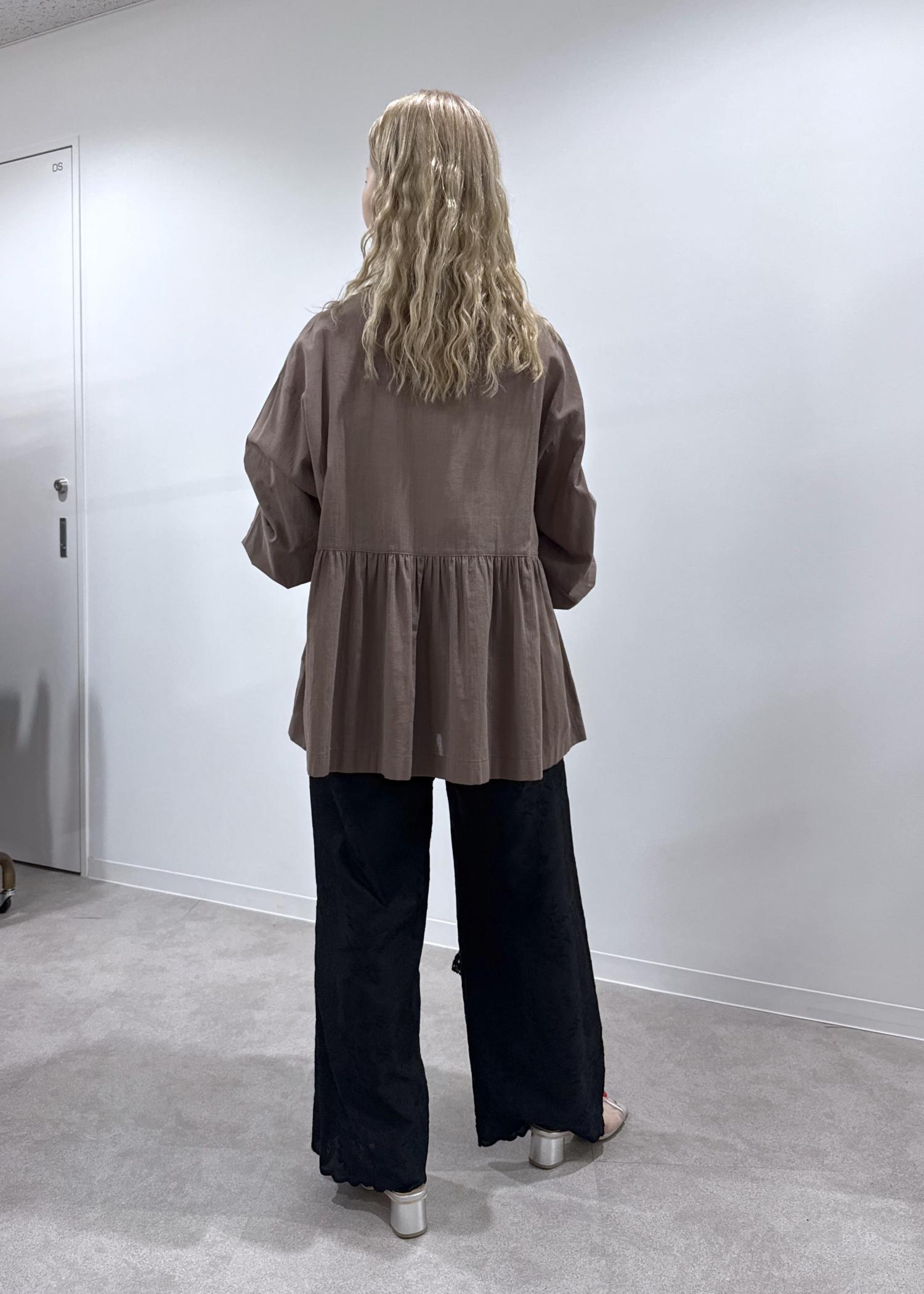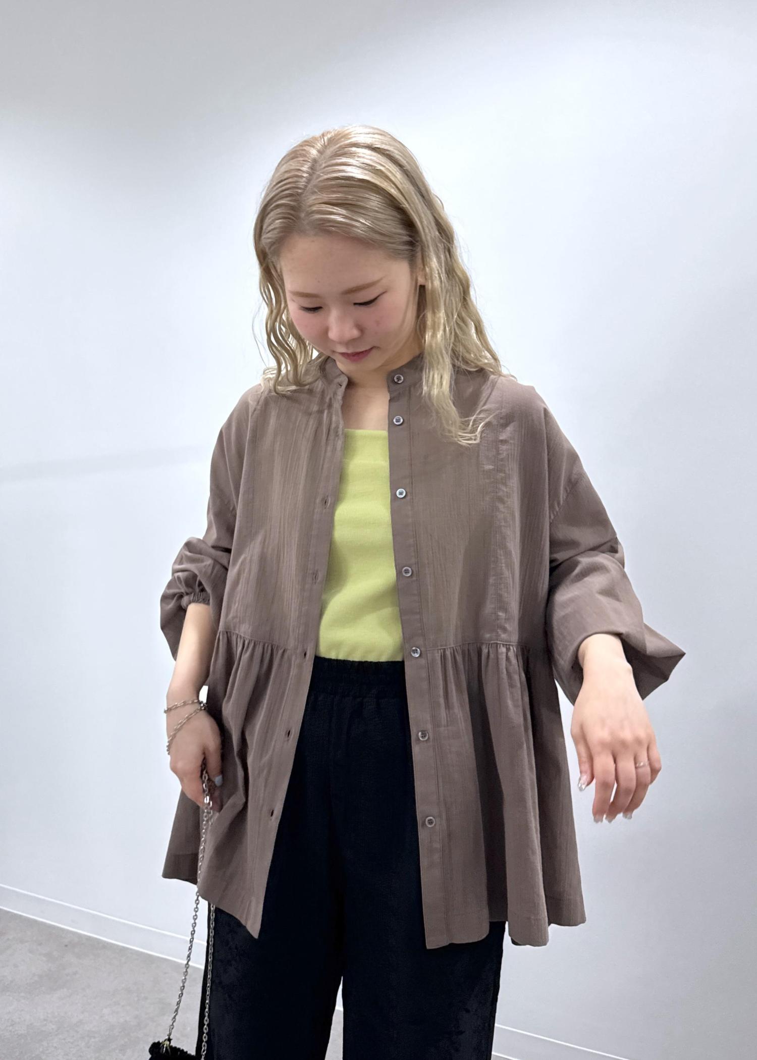 アウトレットROPÉ PICNIC【接触冷感・通気性】お着軽シャツシリーズ/綿ボイルペプラムシャツブラウン / 38¥2,396レビュー少し透け感のあるコットンシャツです。