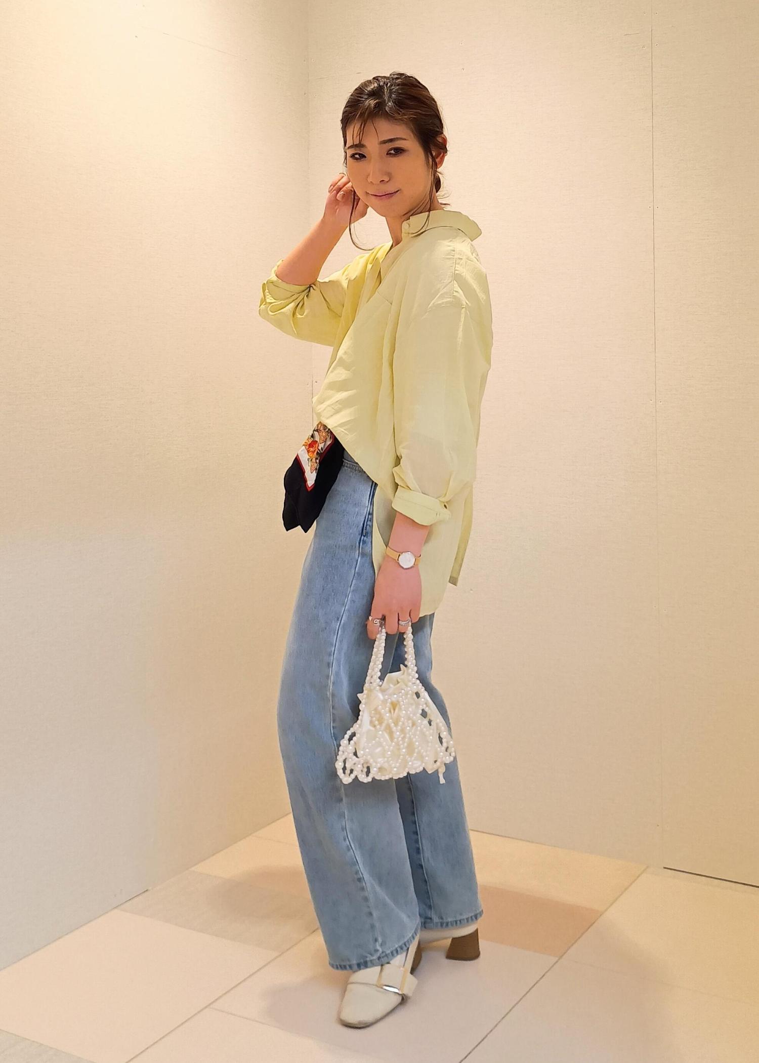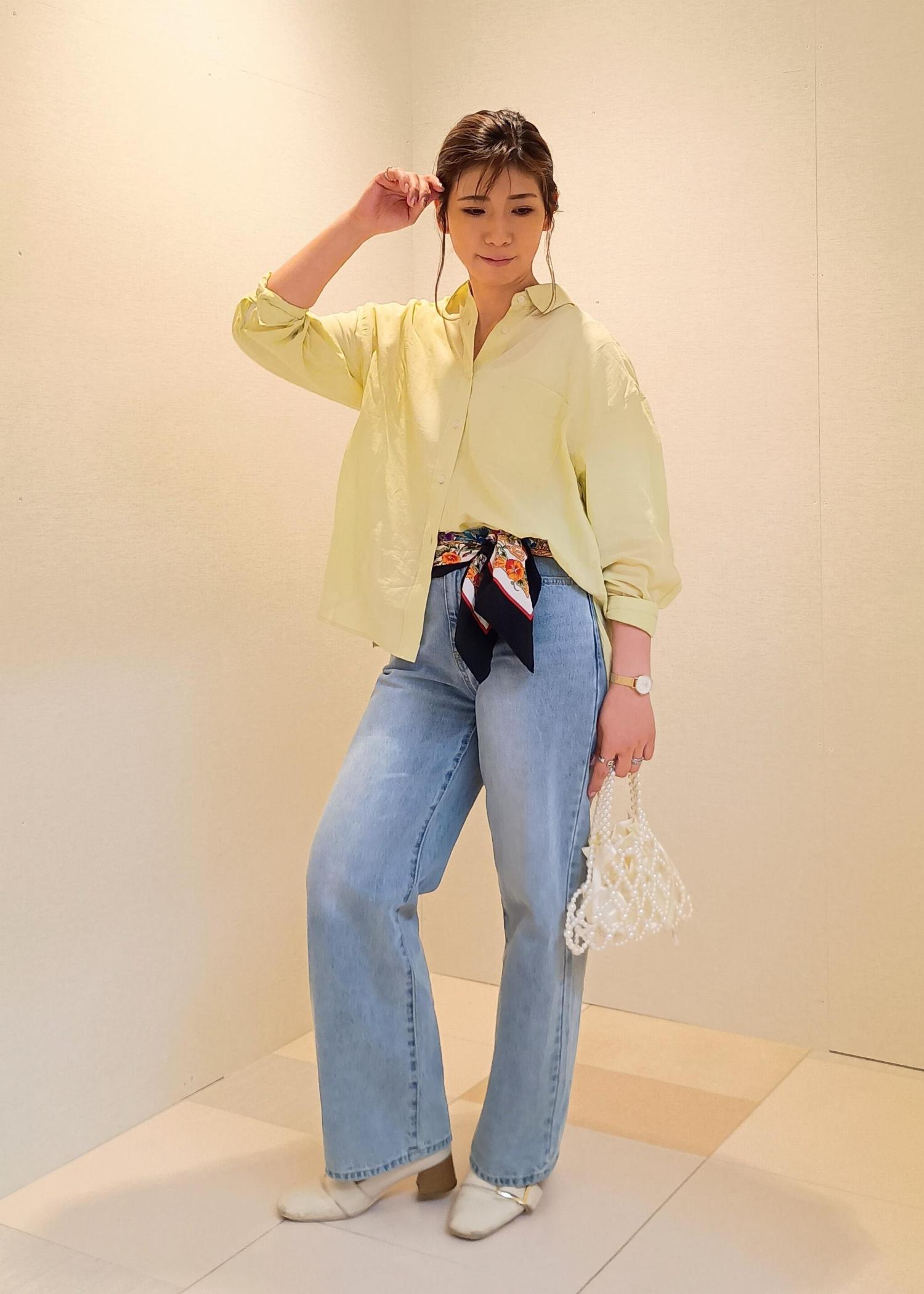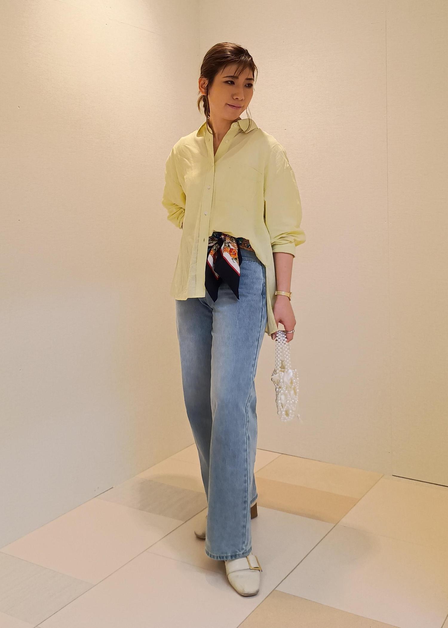 シンプルなシャツ×デニムコーデ