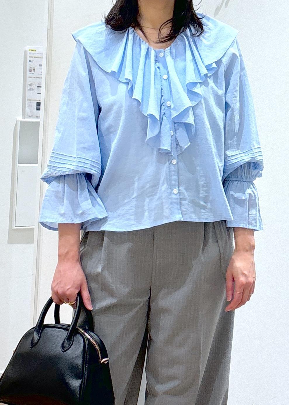 アウトレットROPÉ PICNIC【接触冷感・通気性】お着軽シャツシリーズ/綿ボイルフリルブラウスサックス / 38¥4,391レビュー大きなフリルがポイントのブラウスです。