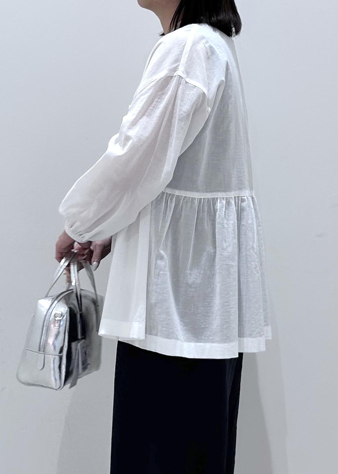 アウトレットROPÉ PICNIC【接触冷感・通気性】お着軽シャツシリーズ/綿ボイルペプラムシャツオフホワイト / 38¥2,396レビュー腰周りがフワッとしているデザインなので