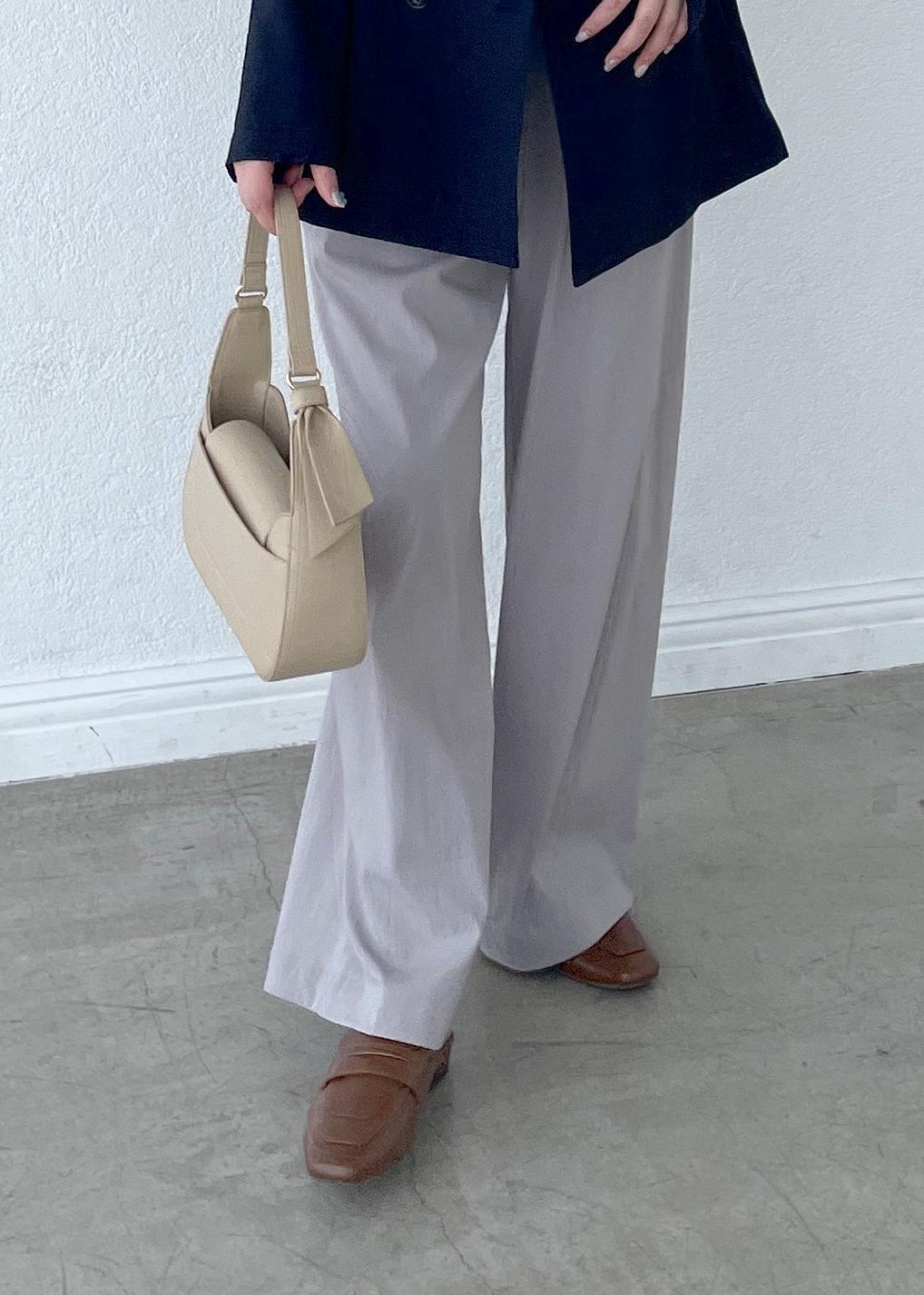 ワイドなシルエットですが裾は広がりすぎない作りなので、きれいめな合わせにも着用しやすいです。 -