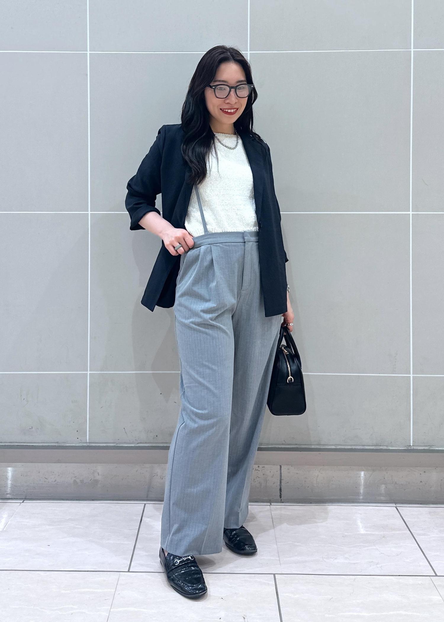 ジャケットを羽織るだけできちんと感が増し、オフィスカジュアルにもオススメ♩
