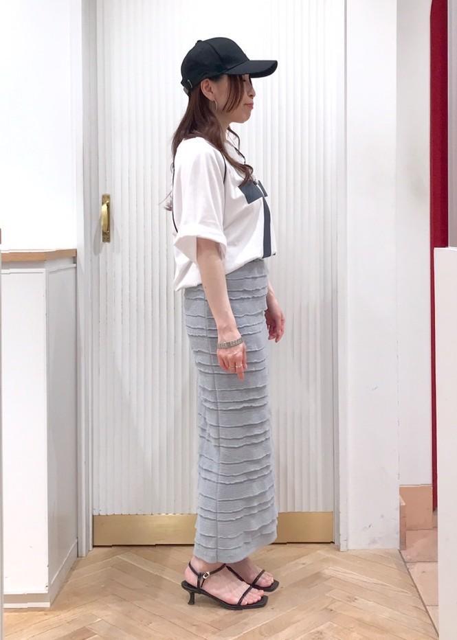 腰骨が張った体形なので腰回りはぴったりしますが、ウエストやお尻のシルエットは拾いすぎずに着られます。
