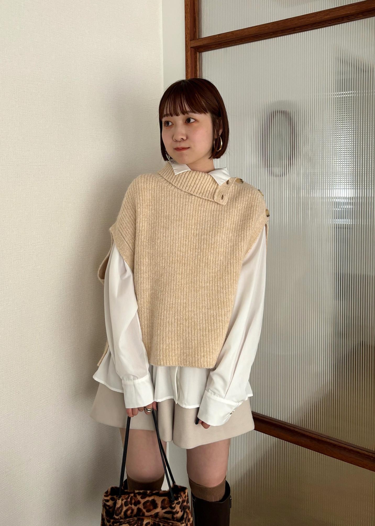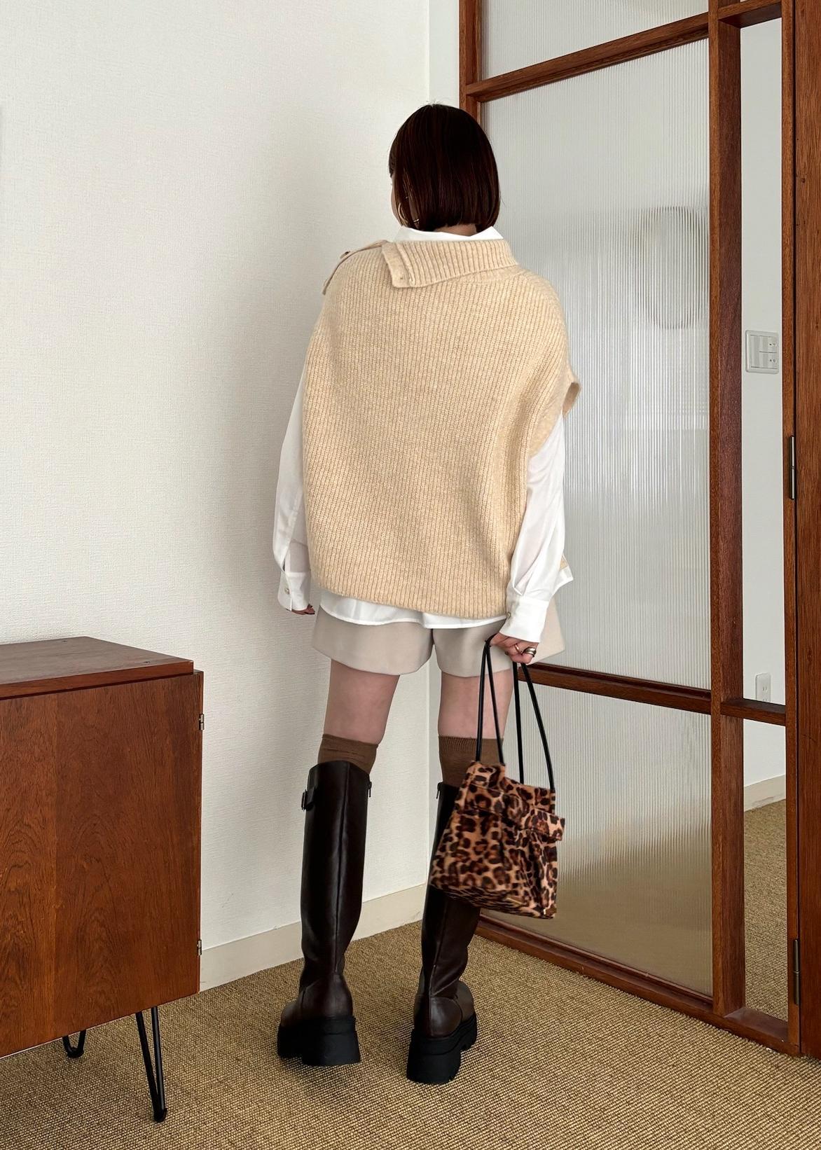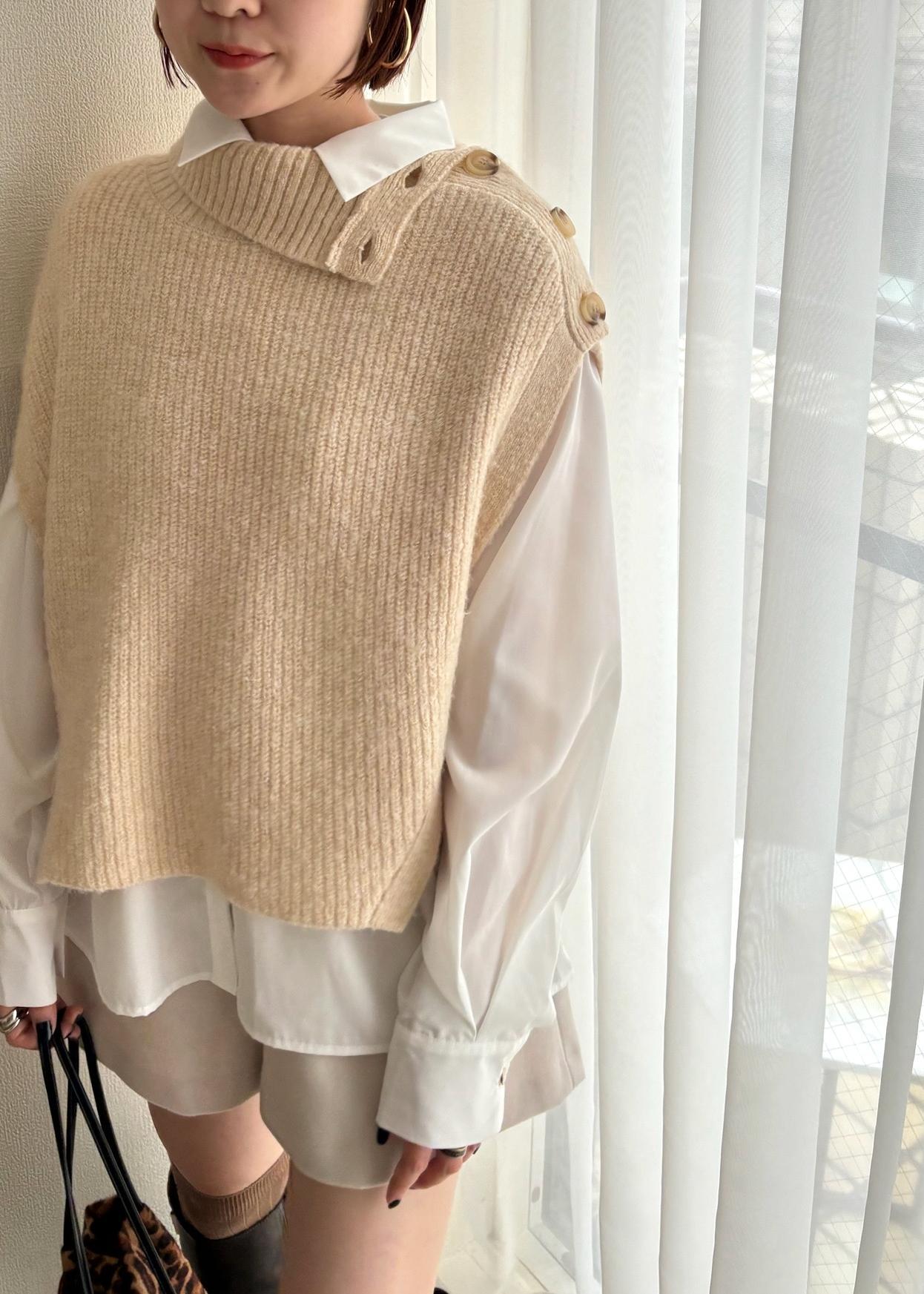 ニットベストのインナーはシャツで、