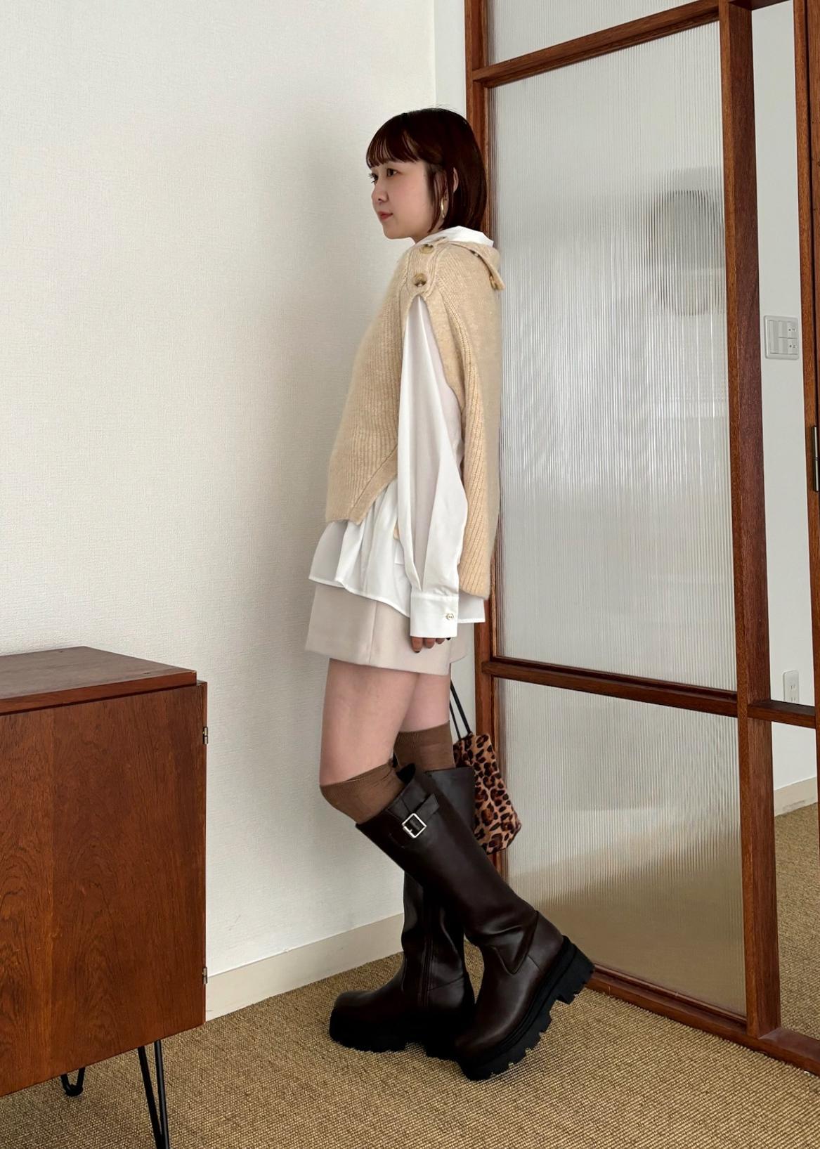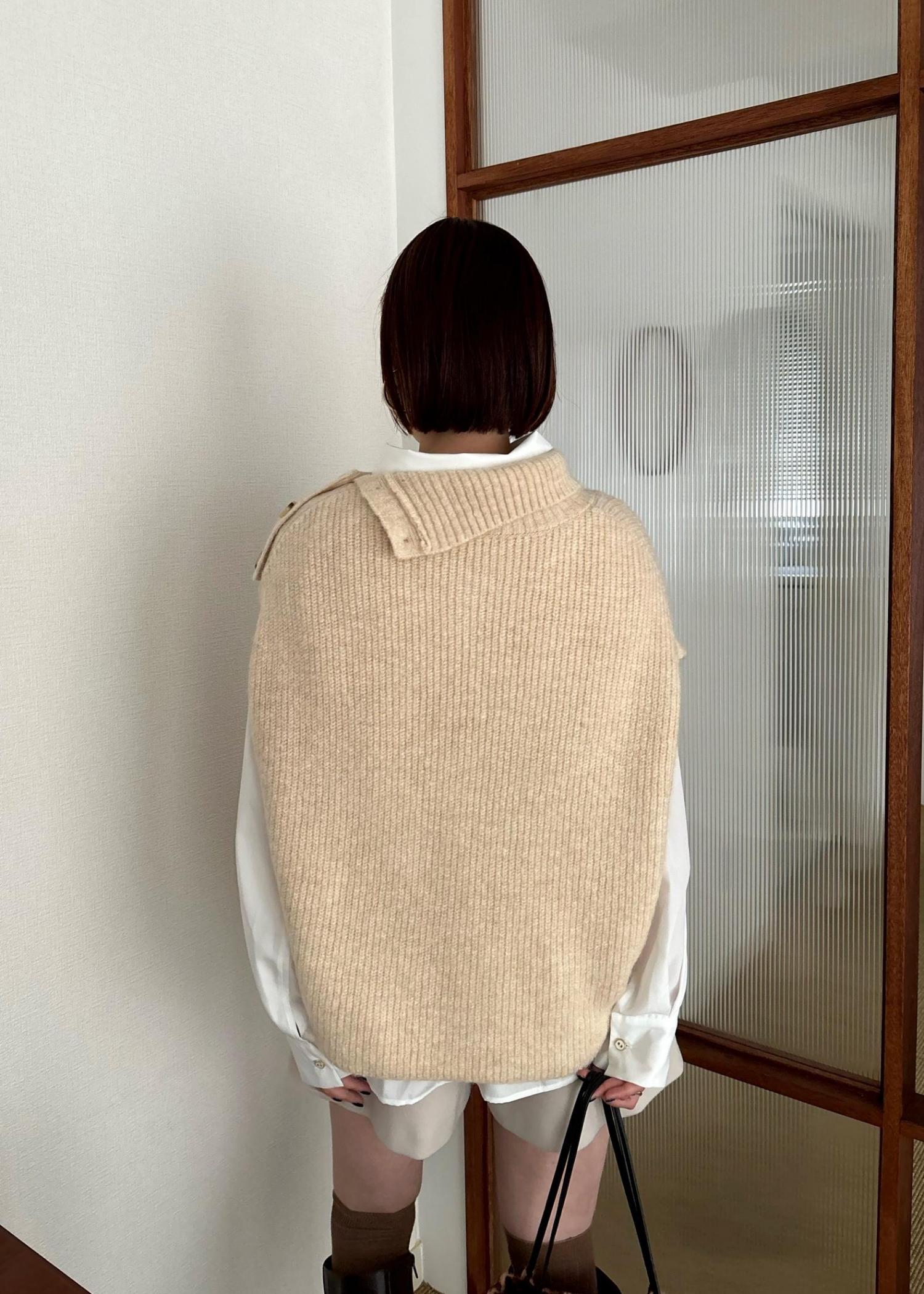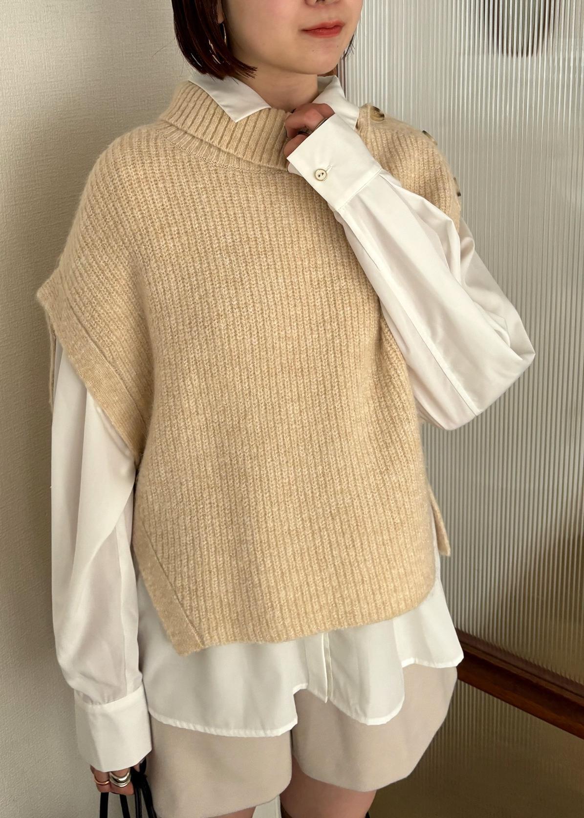 ニットベストのインナーはシャツで、