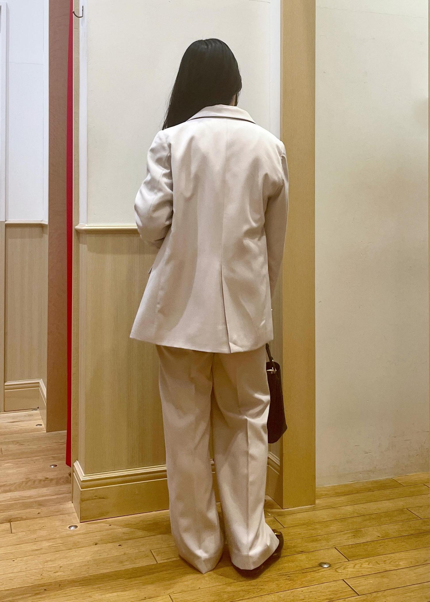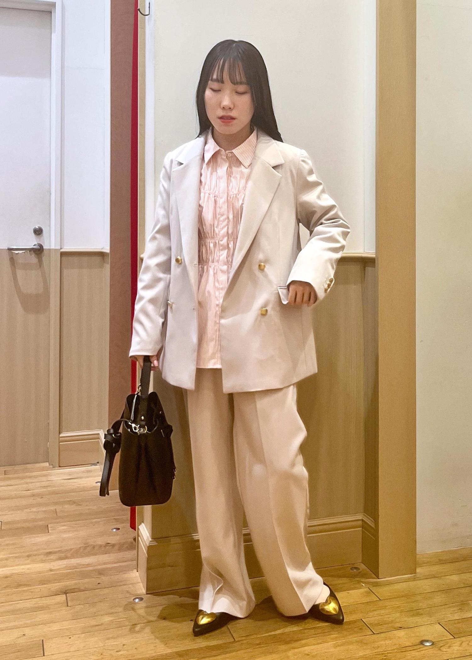 セットアップにブラウスの王道合わせですが、