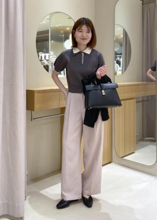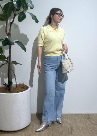 ダブルカラー半袖ポロニットトップス/イージーケア・WEB限定カラー
