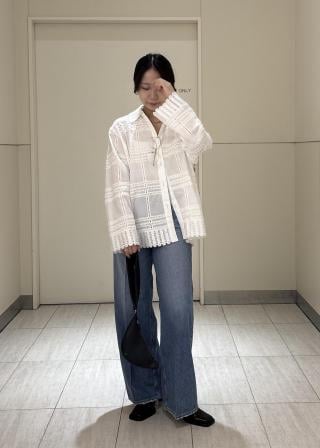 透かし編み金釦カットカーディガン