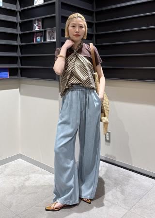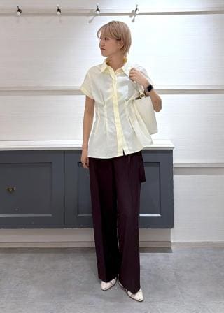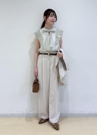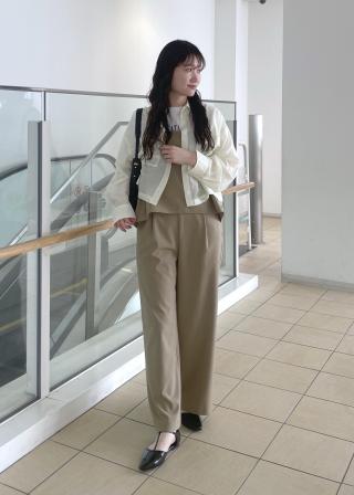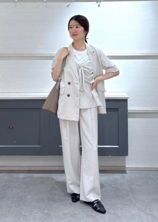 【cahoさんコラボ】低身長・小柄さんサイズ エアリーリネンライク タックワイドパンツ