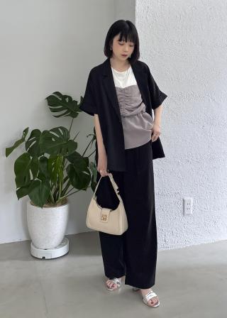 カラミ織りワンタックワイドパンツ/セットアップ対応・イージーケア