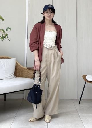 カナパ ベルト付きワイドパンツ/セットアップ対応・UV・抗菌防臭・接触冷感