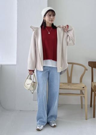 マシュマロニットVネックプルオーバー/イージーケア・リンクコーデ