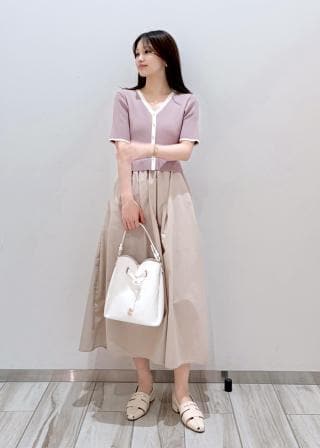 メタル釦布帛ドッキングハーフスリーブニットワンピース