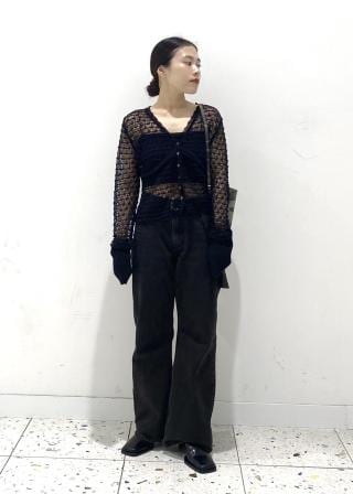 透かし編み金釦カットカーディガン