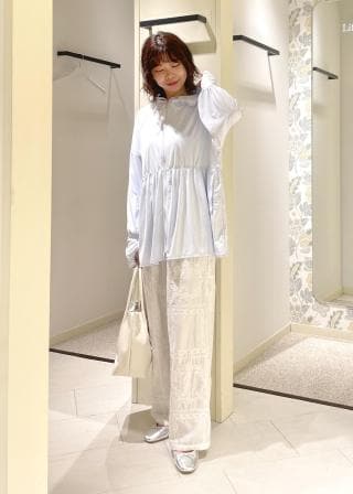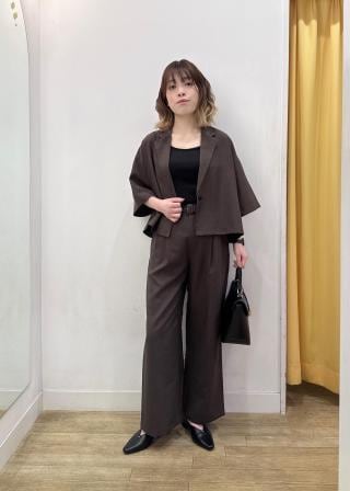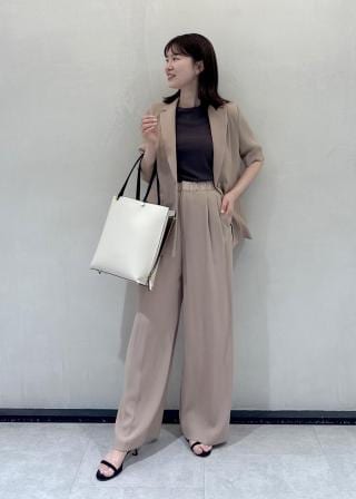 【cahoさんコラボ】低身長・小柄さんサイズ エアリーリネンライク タックワイドパンツ
