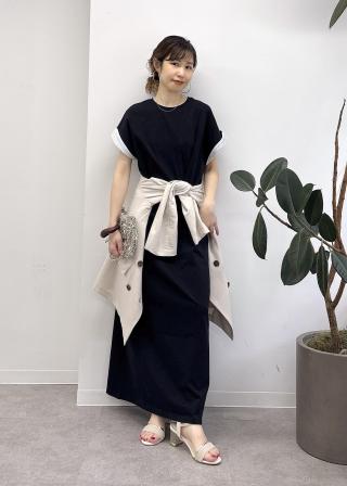 メタル釦布帛ドッキングハーフスリーブニットワンピース