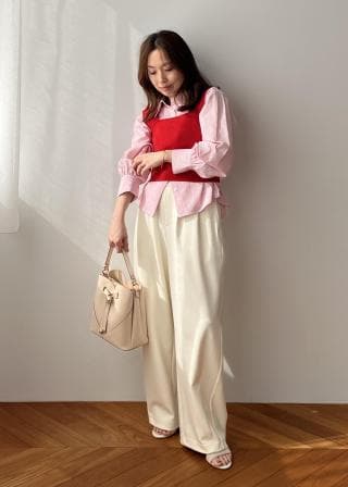 マシュマロ袖パールドルマンニット/イージーケア・リンクコーデ